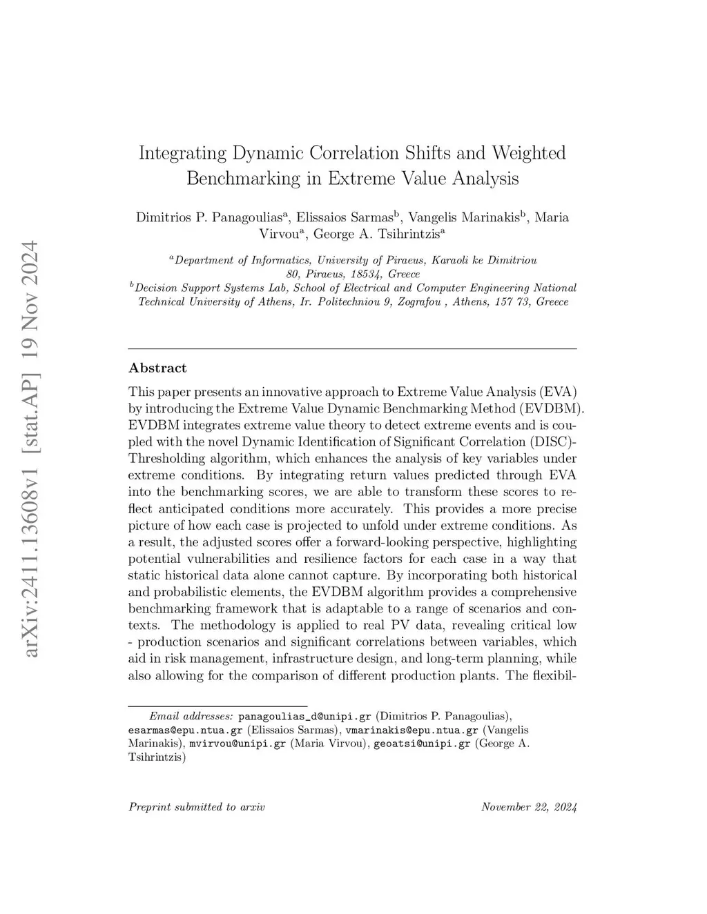 This paper presents an innovative approach to Extreme Value Analysis (EVA) by introducing the Extreme Value Dynamic Benchmarking Method (EVDBM). EVDBM integrates extreme value theory to detect extreme events and is coupled with the novel Dynamic Identification of Significant Correlation (DISC)-Thresholding algorithm, which enhances the analysis of key variables under extreme conditions. By integrating return values predicted through EVA into the benchmarking scores, we are able to transform these scores to reflect anticipated conditions more accurately. This provides a more precise picture of how each case is projected to unfold under extreme conditions. As a result, the adjusted scores offer a forward-looking perspective, highlighting potential vulnerabilities and resilience factors for each case in a way that static historical data alone cannot capture. By incorporating both historical and probabilistic elements, the EVDBM algorithm provides a comprehensive benchmarking framework that is adaptable to a range of scenarios and contexts. The methodology is applied to real PV data, revealing critical low - production scenarios and significant correlations between variables, which aid in risk management, infrastructure design, and long-term planning, while also allowing for the comparison of different production plants. The flexibility of EVDBM suggests its potential for broader applications in other sectors where decision-making sensitivity is crucial, offering valuable insights to improve outcomes.