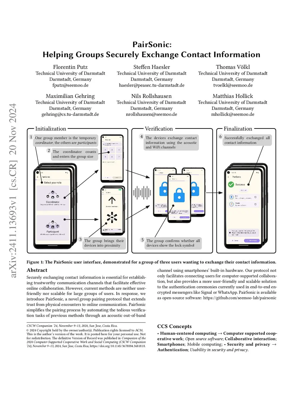 PairSonic: Helping Groups Securely Exchange Contact Information