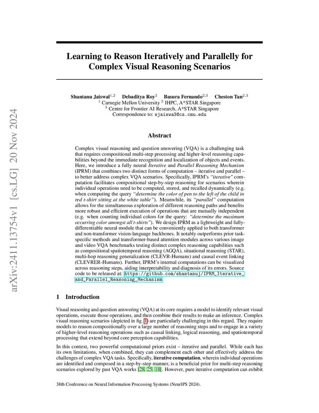 Learning to Reason Iteratively and Parallelly for Complex Visual