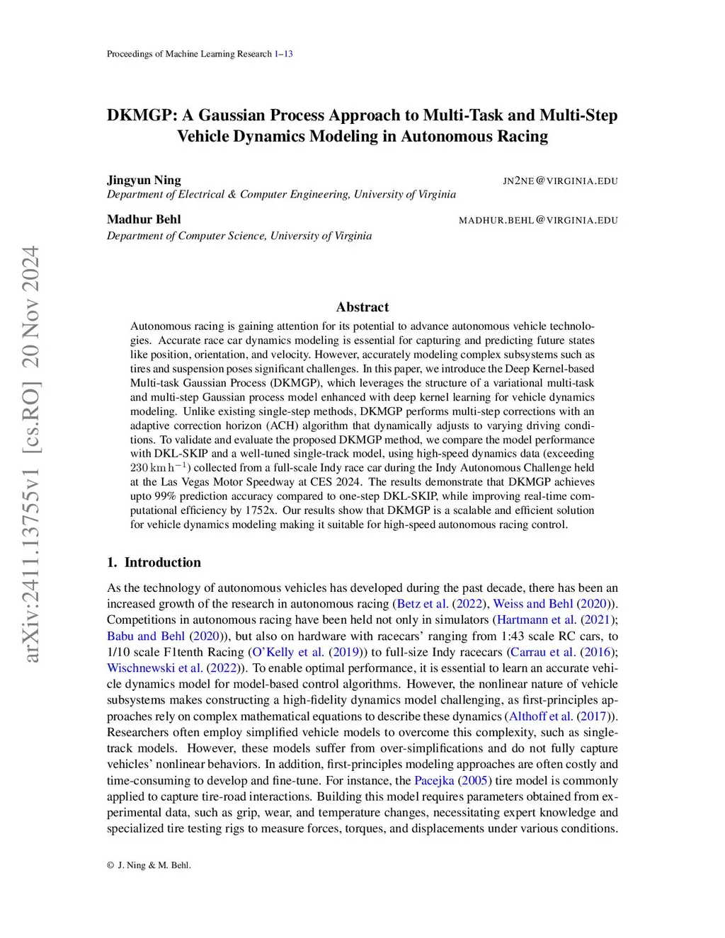 Dynamics Modeling in Autonomous Racing