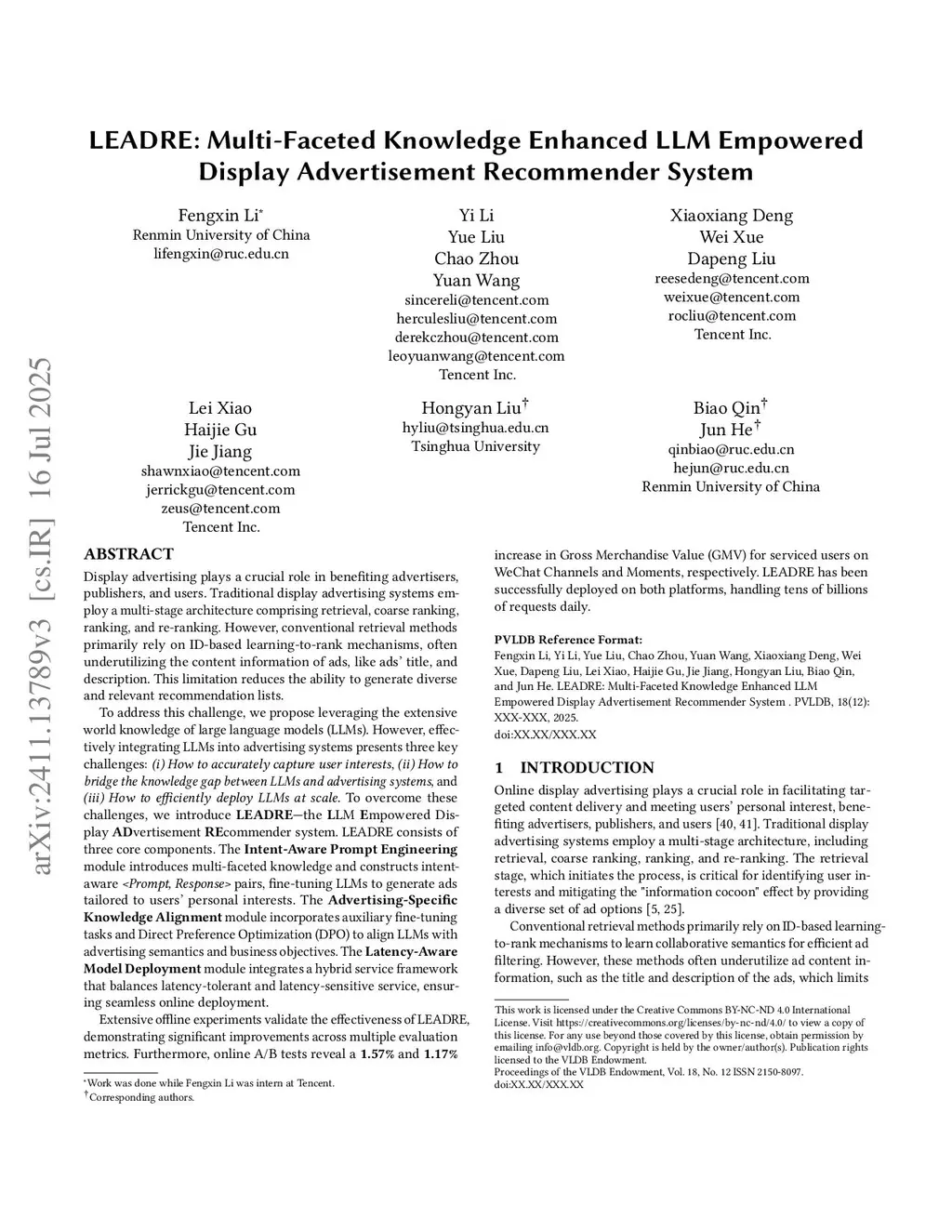 LEADRE: Multi-Faceted Knowledge Enhanced LLM Empowered Display Advertisement Recommender System