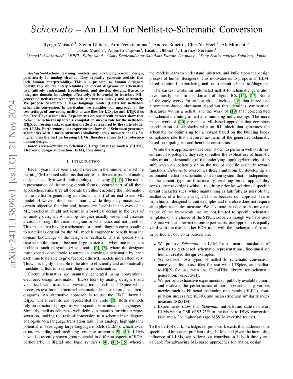 Schemato - An LLM for Netlist-to-Schematic Conversion