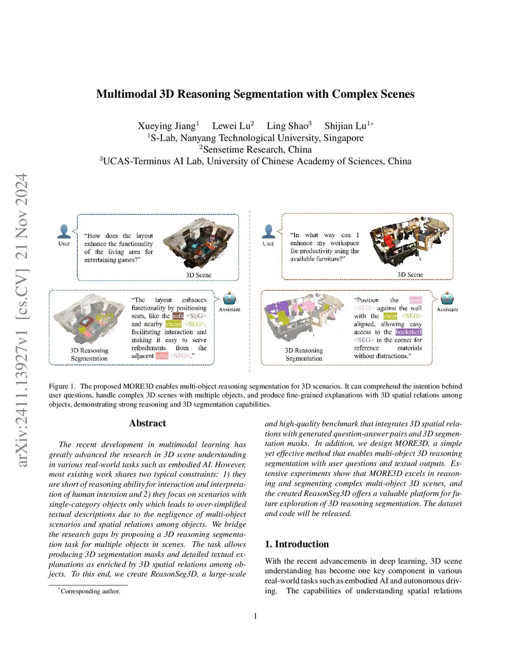 Multimodal 3D Reasoning Segmentation with Complex Scenes