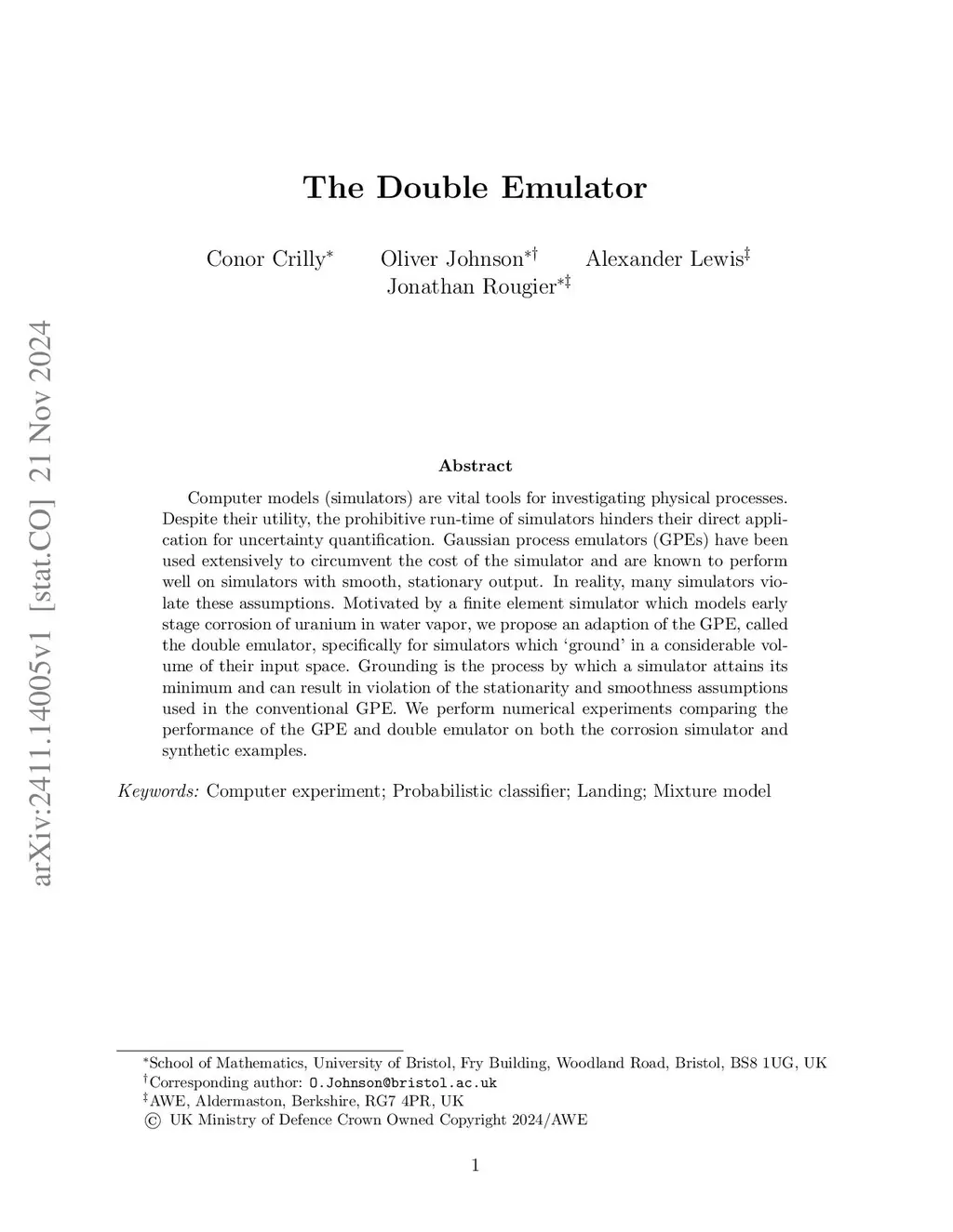 Computer models (simulators) are vital tools for investigating physical processes. Despite their utility, the prohibitive run-time of simulators hinders their direct application for uncertainty quantification. Gaussian process emulators (GPEs) have been used extensively to circumvent the cost of the simulator and are known to perform well on simulators with smooth, stationary output. In reality, many simulators violate these assumptions. Motivated by a finite element simulator which models early stage corrosion of uranium in water vapor, we propose an adaption of the GPE, called the double emulator, specifically for simulators which 'ground' in a considerable volume of their input space. Grounding is the process by which a simulator attains its minimum and can result in violation of the stationarity and smoothness assumptions used in the conventional GPE. We perform numerical experiments comparing the performance of the GPE and double emulator on both the corrosion simulator and synthetic examples.