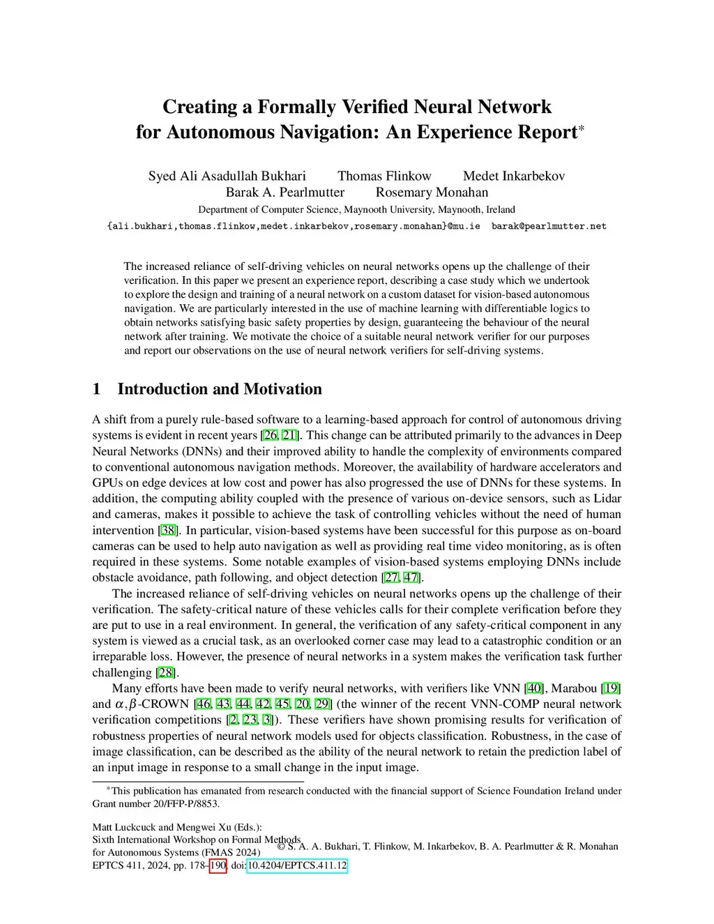 Creating a Formally Verified Neural Network for Autonomous Navigation:
