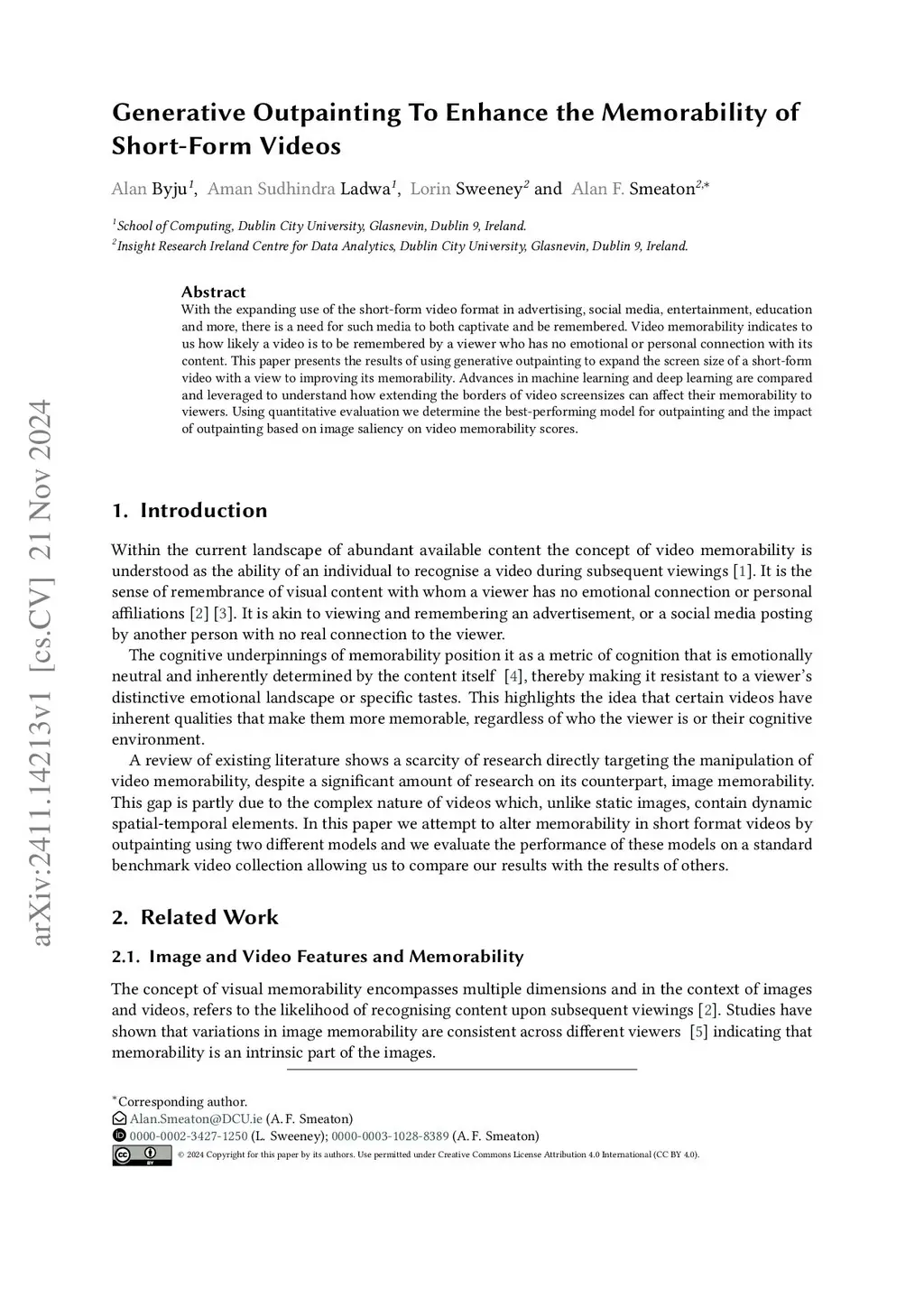 Generative Outpainting To Enhance the Memorability of Short-Form Videos
