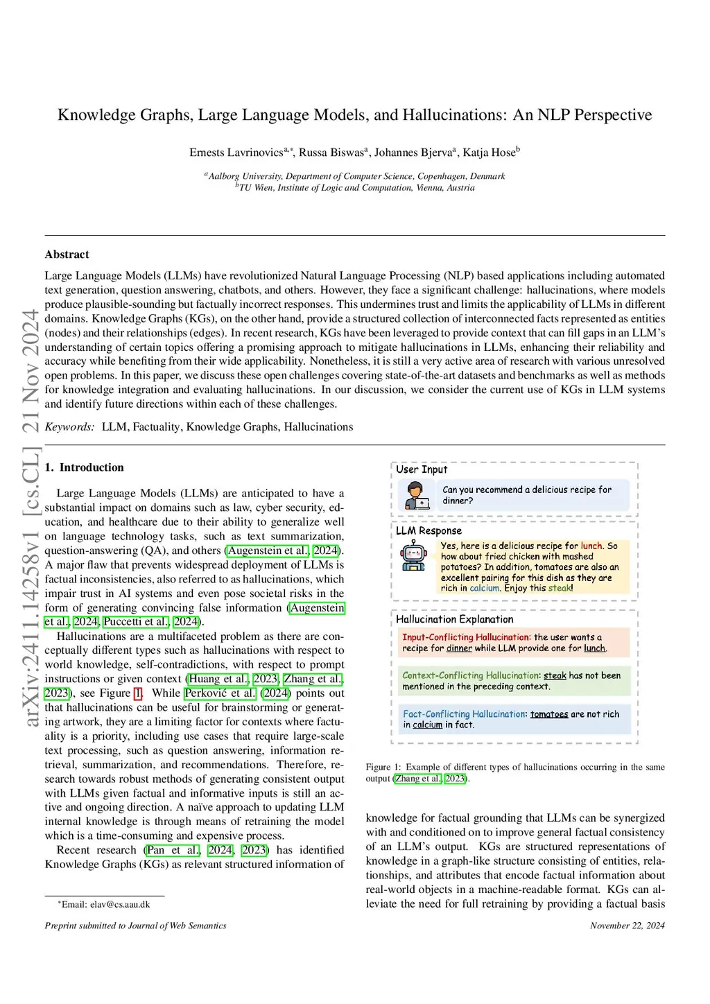 Knowledge Graphs, Large Language Models, and Hallucinations: An NLP