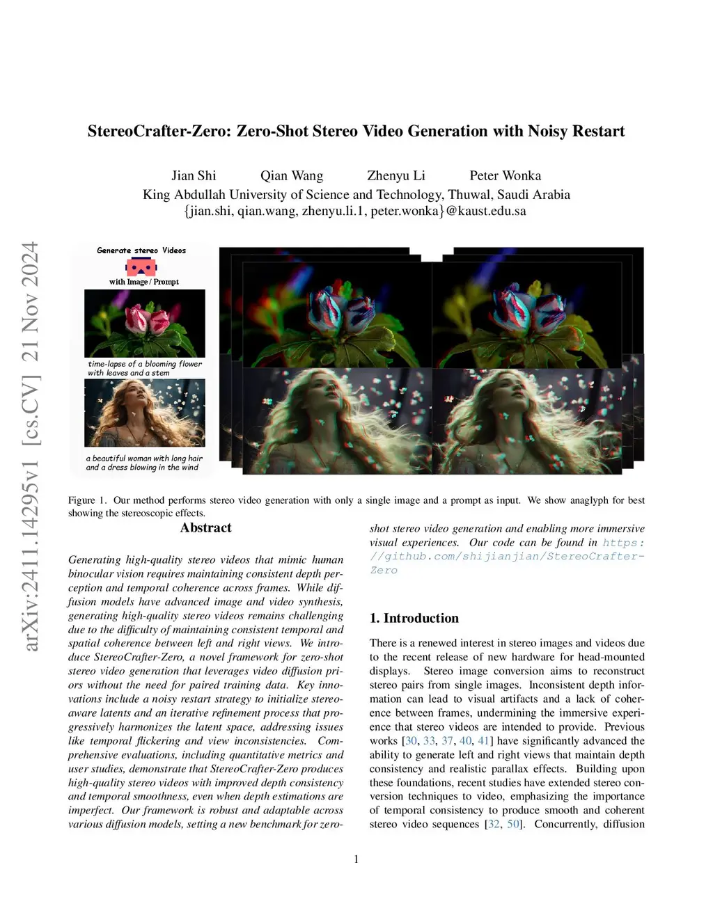 Generating high-quality stereo videos that mimic human binocular vision requires consistent depth perception and temporal coherence across frames. Despite advances in image and video synthesis using diffusion models, producing high-quality stereo videos remains a challenging task due to the difficulty of maintaining consistent temporal and spatial coherence between left and right views. We introduce StereoCrafter-Zero, a novel framework for zero-shot stereo video generation that leverages video diffusion priors without requiring paired training data. Our key innovations include a noisy restart strategy to initialize stereo-aware latent representations and an iterative refinement process that progressively harmonizes the latent space, addressing issues like temporal flickering and view inconsistencies. In addition, we propose the use of dissolved depth maps to streamline latent space operations by reducing high-frequency depth information. Our comprehensive evaluations, including quantitative metrics and user studies, demonstrate that StereoCrafter-Zero produces high-quality stereo videos with enhanced depth consistency and temporal smoothness, even when depth estimations are imperfect. Our framework is robust and adaptable across various diffusion models, setting a new benchmark for zero-shot stereo video generation and enabling more immersive visual experiences. Our code is inthis https URL.