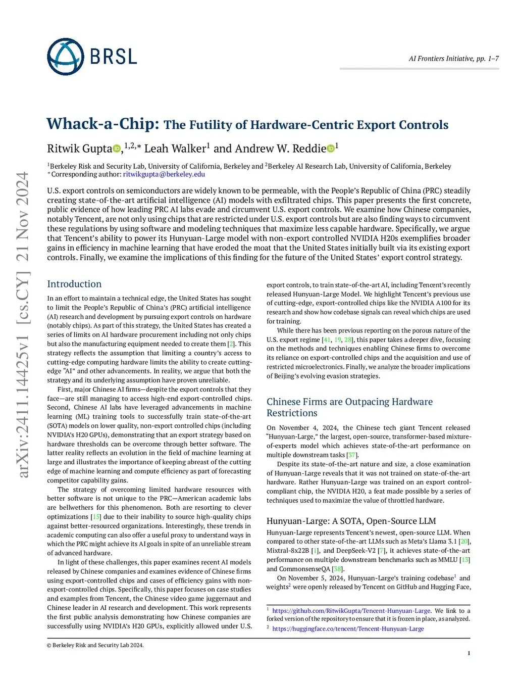 U.S. export controls on semiconductors are widely known to be permeable, with the People's Republic of China (PRC) steadily creating state-of-the-art artificial intelligence (AI) models with exfiltrated chips. This paper presents the first concrete, public evidence of how leading PRC AI labs evade and circumvent U.S. export controls. We examine how Chinese companies, notably Tencent, are not only using chips that are restricted under U.S. export controls but are also finding ways to circumvent these regulations by using software and modeling techniques that maximize less capable hardware. Specifically, we argue that Tencent's ability to power its Hunyuan-Large model with non-export controlled NVIDIA H20s exemplifies broader gains in efficiency in machine learning that have eroded the moat that the United States initially built via its existing export controls. Finally, we examine the implications of this finding for the future of the United States' export control strategy.