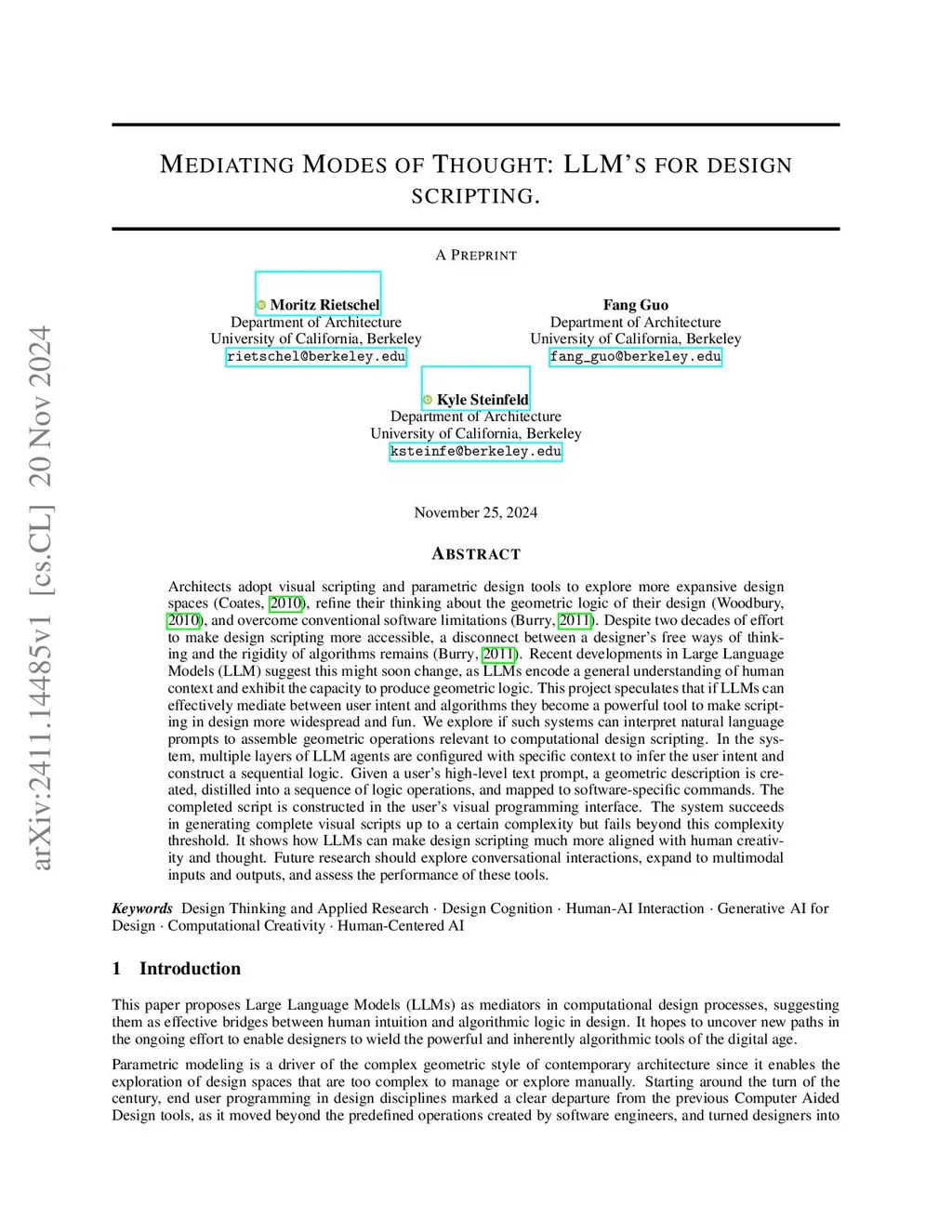 Mediating Modes of Thought: LLM's for design scripting