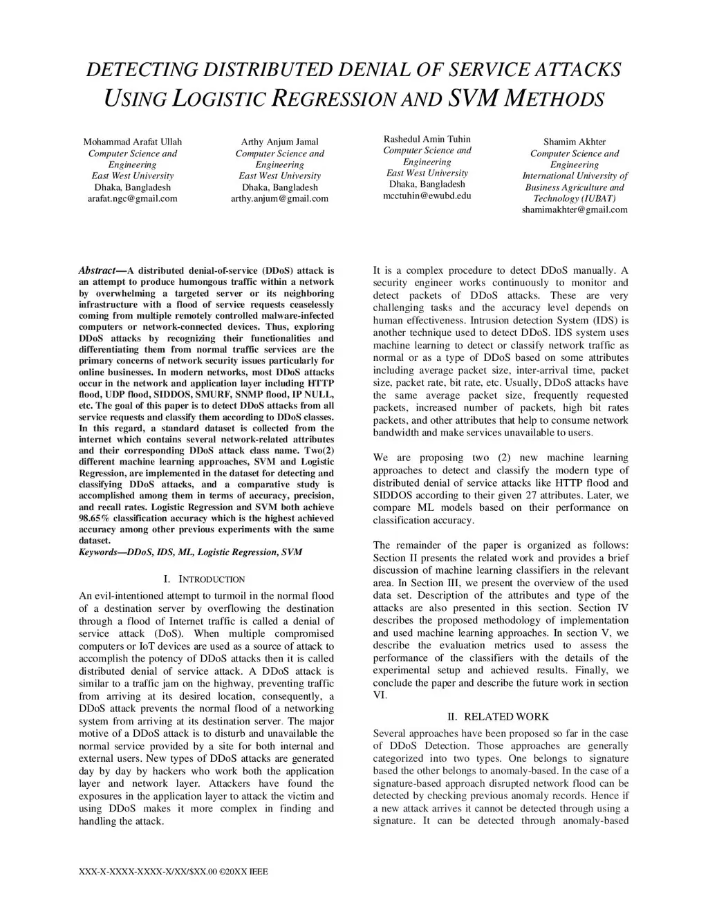 Detecting Distributed Denial of Service Attacks Using Logistic