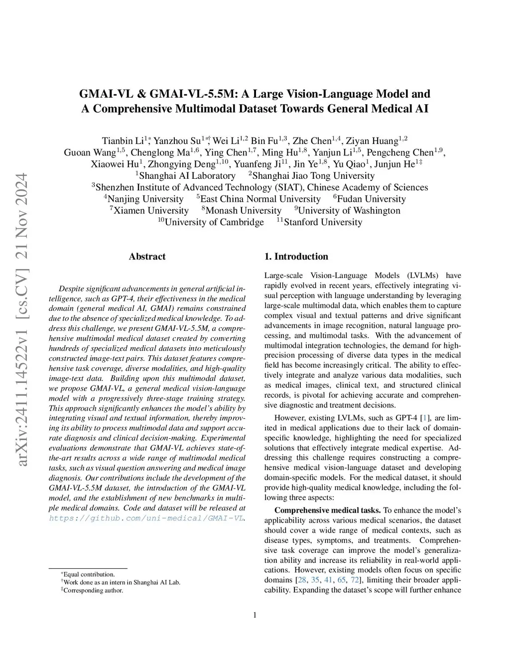 GMAI-VL & GMAI-VL-5.5M: A Large Vision-Language Model and A Comprehensive Multimodal Dataset Towards General Medical AI