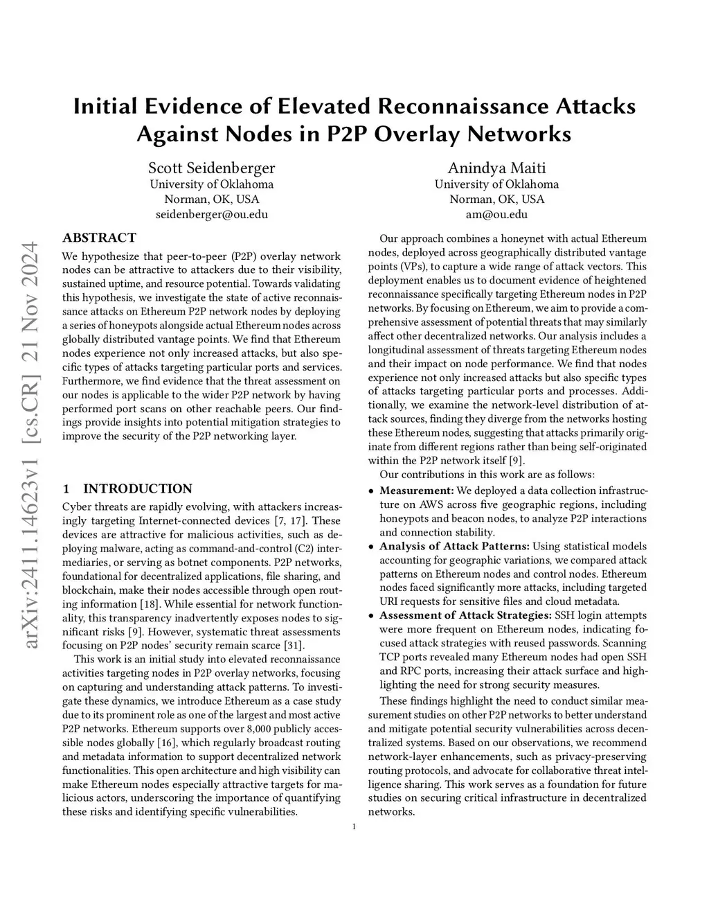 Initial Evidence of Elevated Reconnaissance Attacks Against Nodes in P2P