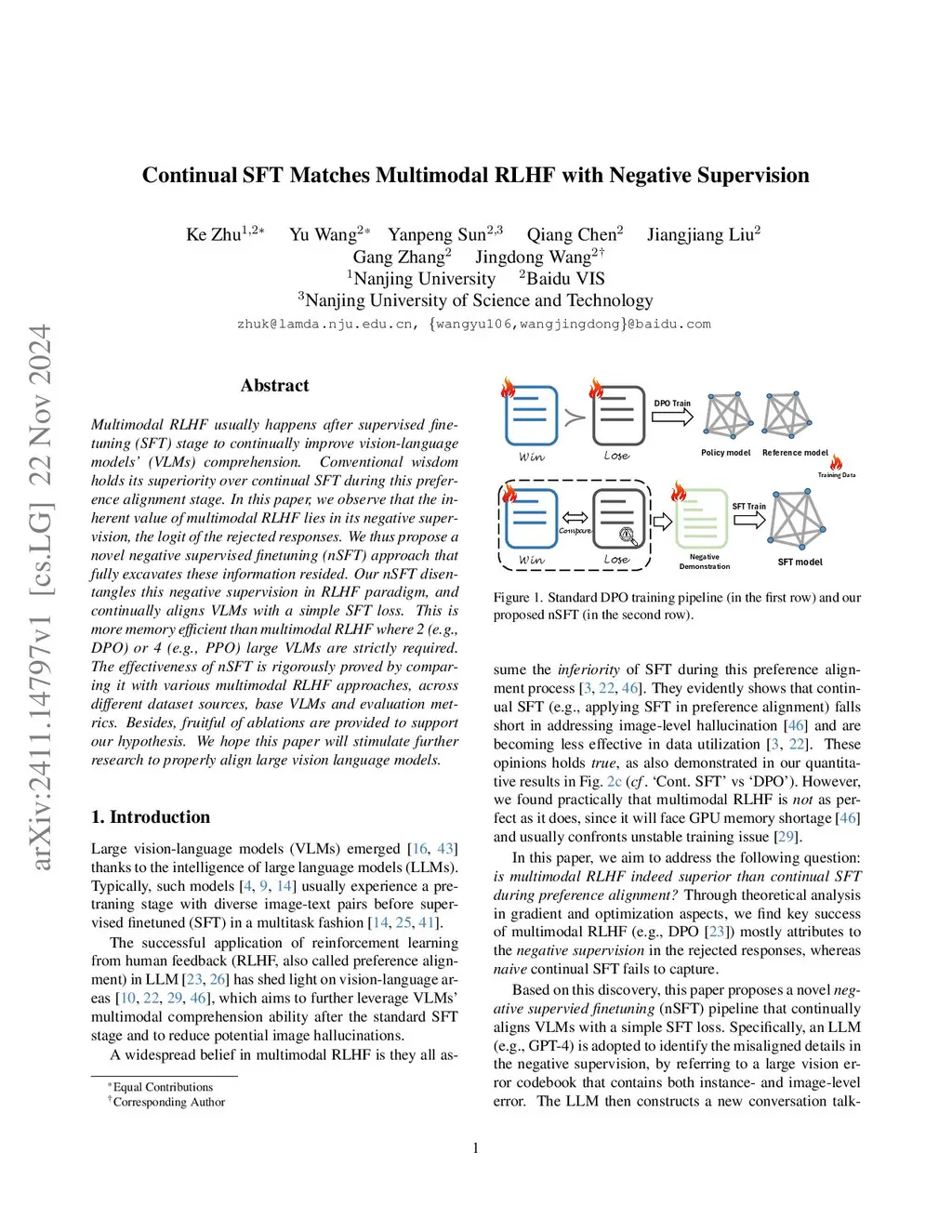 Continual SFT Matches Multimodal RLHF with Negative Supervision