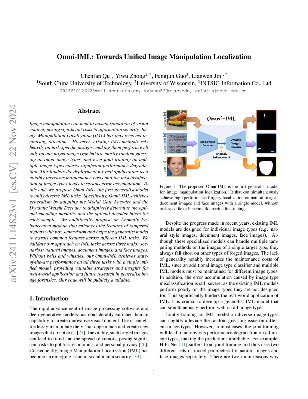 Existing Image Manipulation Localization (IML) methods mostly rely heavily on task-specific designs, making them perform well only on the target IML task, while joint training on multiple IML tasks causes significant performance degradation, hindering real applications.To this end, we propose Omni-IML, the first generalist model designed to unify IML across diverse tasks.Specifically, Omni-IML achieves generalization through three key components: (1) a Modal Gate Encoder, which adaptively selects the optimal encoding modality per sample, (2) a Dynamic Weight Decoder, which dynamically adjusts decoder filters to the task at hand, and (3) an Anomaly Enhancement module that leverages box supervision to highlight the tampered regions and facilitate the learning of task-agnostic features.Beyond localization, to support interpretation of the tampered images, we construct Omni-273k, a large high-quality dataset that includes natural language descriptions of tampered artifact. It is annotated through our automatic, chain-of-thoughts annotation technique.We also design a simple-yet-effective interpretation module to better utilize these descriptive annotations.Our extensive experiments show that our single Omni-IML model achieves state-of-the-art performance across all four major IML tasks, providing a valuable solution for practical deployment and a promising direction of generalist models in image forensics. Our code and dataset will be publicly available.