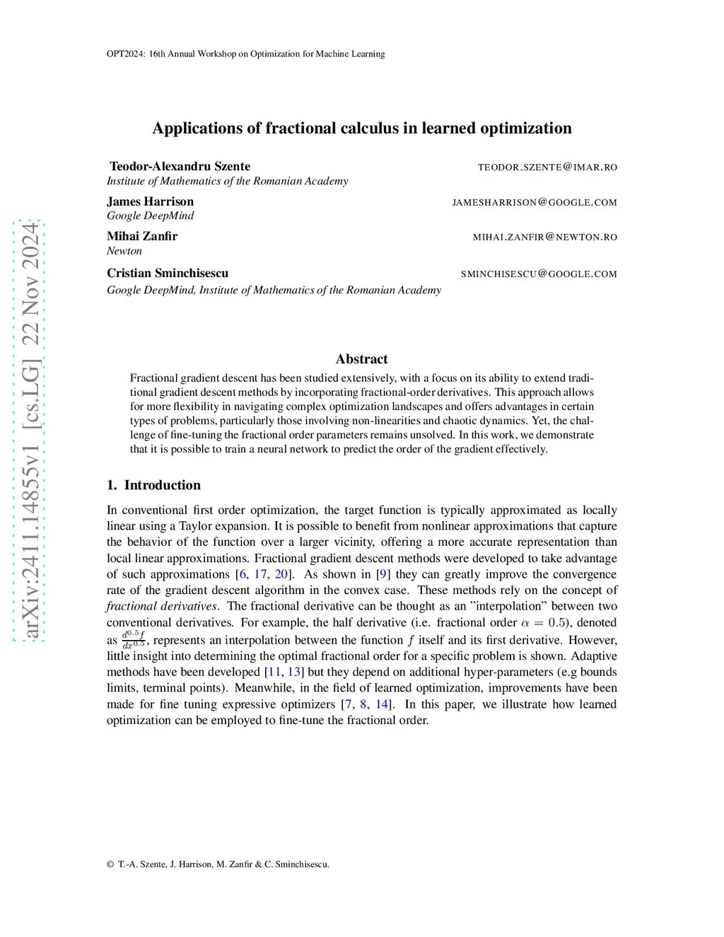 Fractional gradient descent has been studied extensively, with a focus on its ability to extend traditional gradient descent methods by incorporating fractional-order derivatives. This approach allows for more flexibility in navigating complex optimization landscapes and offers advantages in certain types of problems, particularly those involving non-linearities and chaotic dynamics. Yet, the challenge of fine-tuning the fractional order parameters remains unsolved. In this work, we demonstrate that it is possible to train a neural network to predict the order of the gradient effectively.