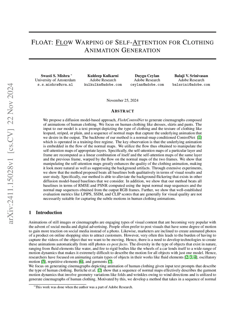 FloAt: Flow Warping of Self-Attention for Clothing Animation Generation