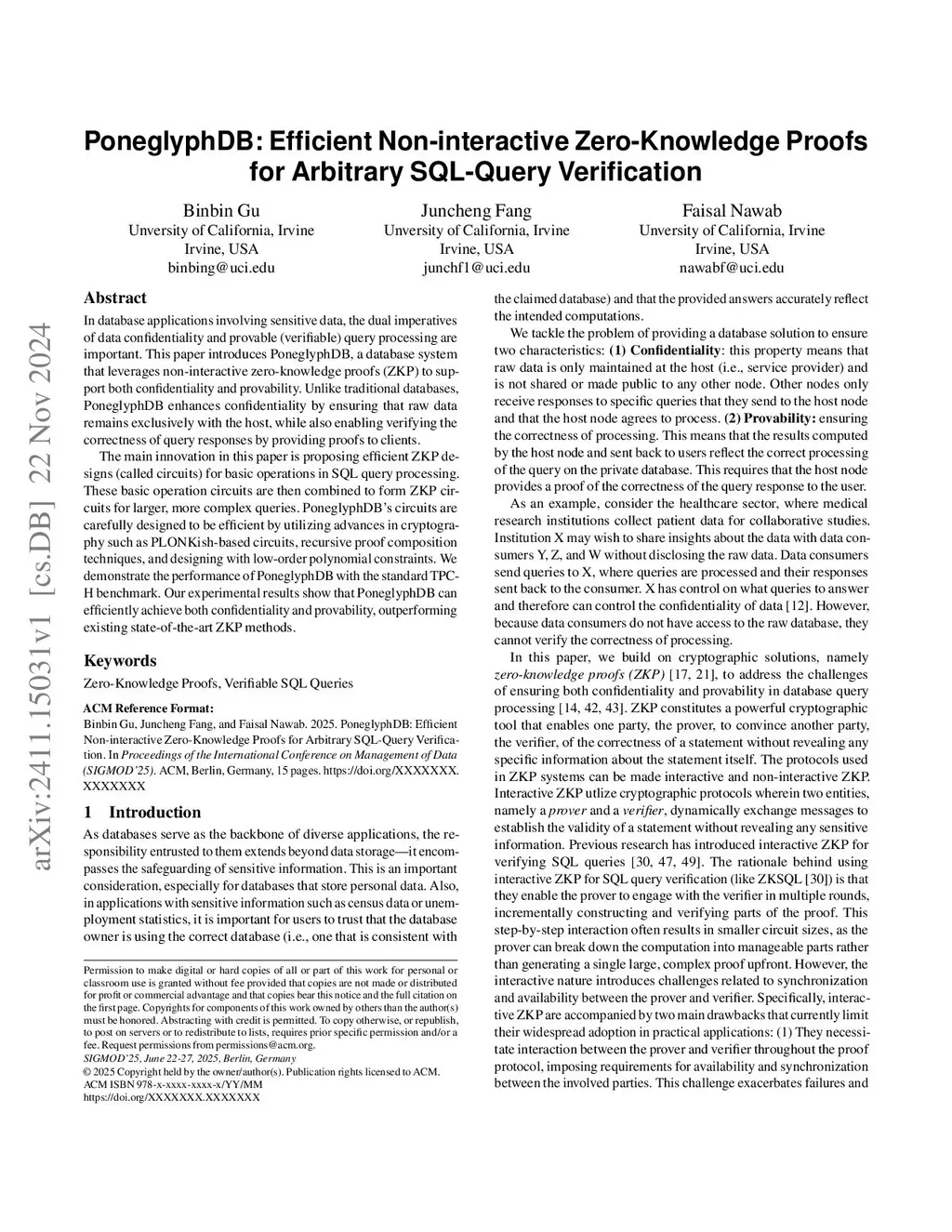 PoneglyphDB: Efficient Non-interactive Zero-Knowledge Proofs for