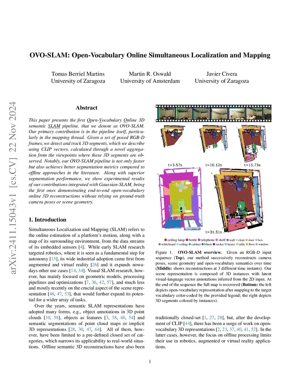 This paper presents an Open-Vocabulary Online 3D semantic mapping pipeline, that we denote by its acronym OVO. Given a sequence of posed RGB-D frames, we detect and track 3D segments, which we describe using CLIP vectors. These are computed from the viewpoints where they are observed by a novel CLIP merging method. Notably, our OVO has a significantly lower computational and memory footprint than offline baselines, while also showing better segmentation metrics than offline and online ones. Along with superior segmentation performance, we also show experimental results of our mapping contributions integrated with two different full SLAM backbones (Gaussian-SLAM and ORB-SLAM2), being the first ones using a neural network to merge CLIP descriptors and demonstrating end-to-end open-vocabulary online 3D mapping with loop closure.