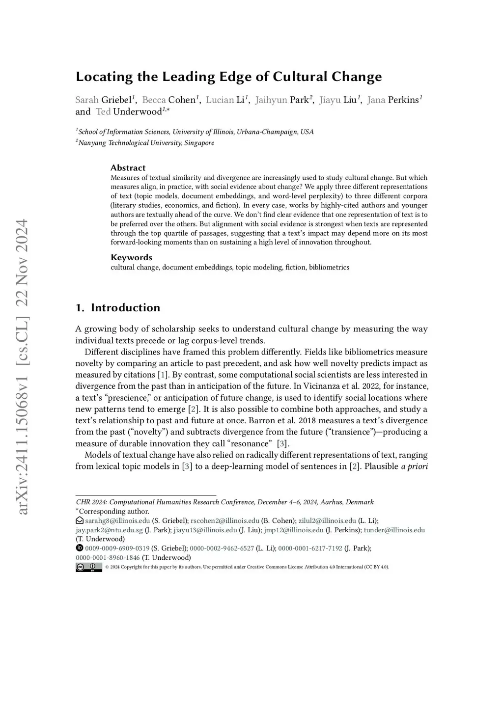 Measures of textual similarity and divergence are increasingly used to study cultural change. But which measures align, in practice, with social evidence about change? We apply three different representations of text (topic models, document embeddings, and word-level perplexity) to three different corpora (literary studies, economics, and fiction). In every case, works by highly-cited authors and younger authors are textually ahead of the curve. We don't find clear evidence that one representation of text is to be preferred over the others. But alignment with social evidence is strongest when texts are represented through the top quartile of passages, suggesting that a text's impact may depend more on its most forward-looking moments than on sustaining a high level of innovation throughout.