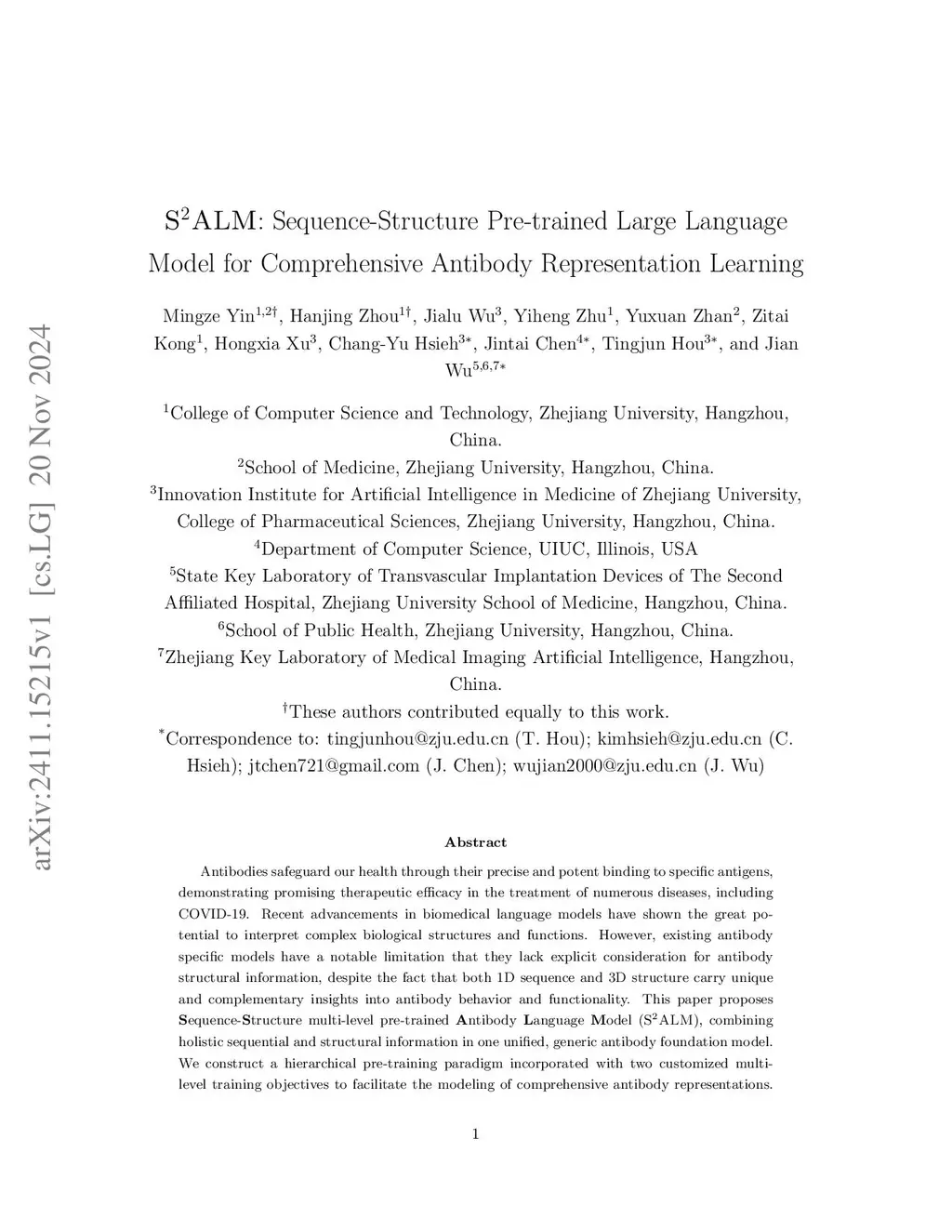 Antibodies safeguard our health through their precise and potent binding to specific antigens, demonstrating promising therapeutic efficacy in the treatment of numerous diseases, including COVID-19. Recent advancements in biomedical language models have shown the great potential to interpret complex biological structures and functions. However, existing antibody specific models have a notable limitation that they lack explicit consideration for antibody structural information, despite the fact that both 1D sequence and 3D structure carry unique and complementary insights into antibody behavior and functionality. This paper proposes Sequence-Structure multi-level pre-trained Antibody Language Model (S^2 ALM), combining holistic sequential and structural information in one unified, generic antibody foundation model. We construct a hierarchical pre-training paradigm incorporated with two customized multi-level training objectives to facilitate the modeling of comprehensive antibody representations. S^2 ALM's representation space uncovers inherent functional binding mechanisms, biological evolution properties and structural interaction patterns. Pre-trained over 75 million sequences and 11.7 million structures, S^2 ALM can be adopted for diverse downstream tasks: accurately predicting antigen-antibody binding affinities, precisely distinguishing B cell maturation stages, identifying antibody crucial binding positions, and specifically designing novel coronavirus-binding antibodies. Remarkably, S^2 ALM outperforms well-established and renowned baselines and sets new state-of-the-art performance across extensive antibody specific understanding and generation tasks. S^2 ALM's ability to model comprehensive and generalized representations further positions its potential to advance real-world therapeutic antibody development, potentially addressing unmet academic, industrial, and clinical needs.