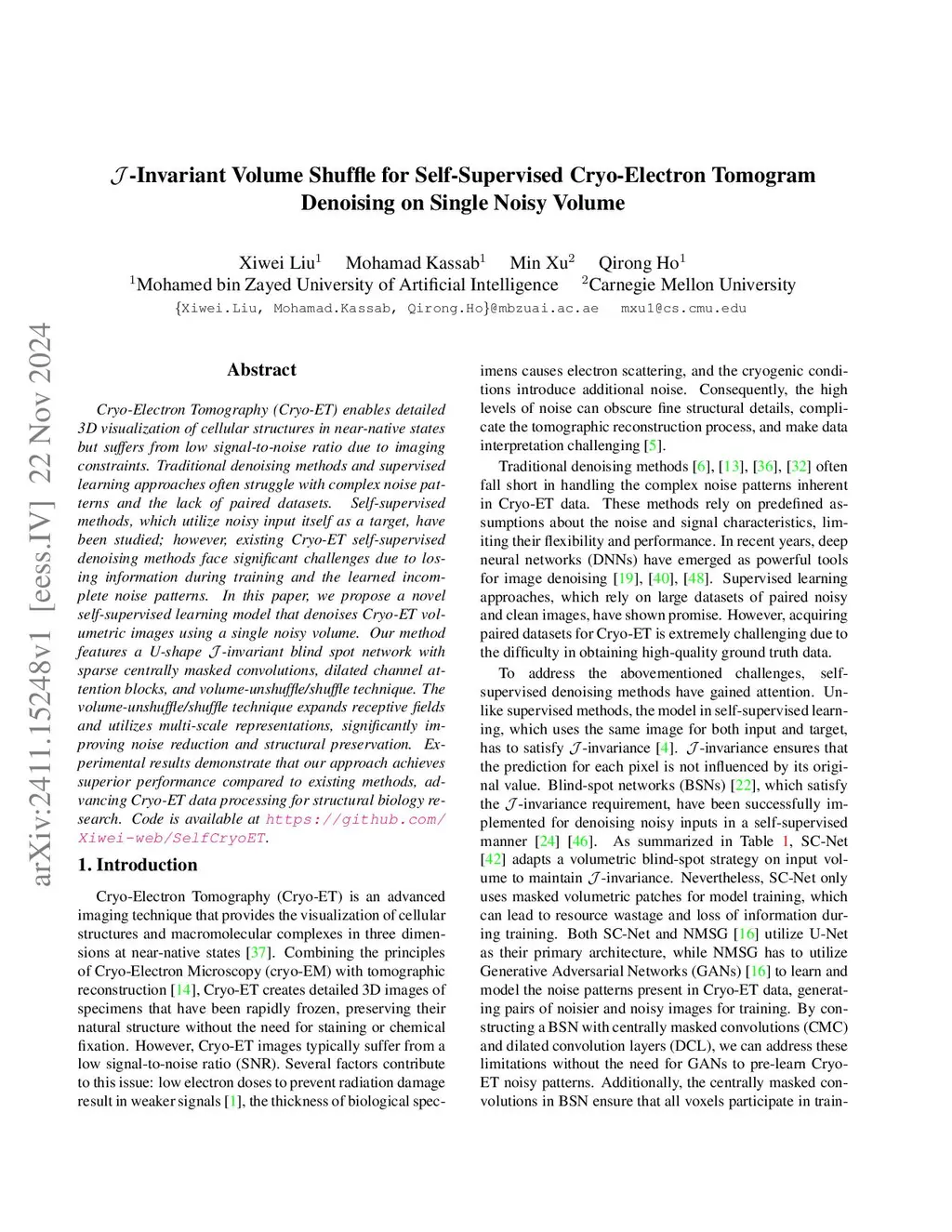 J-Invariant Volume Shuffle for Self-Supervised Cryo-Electron Tomogram Denoising on Single Noisy Volume