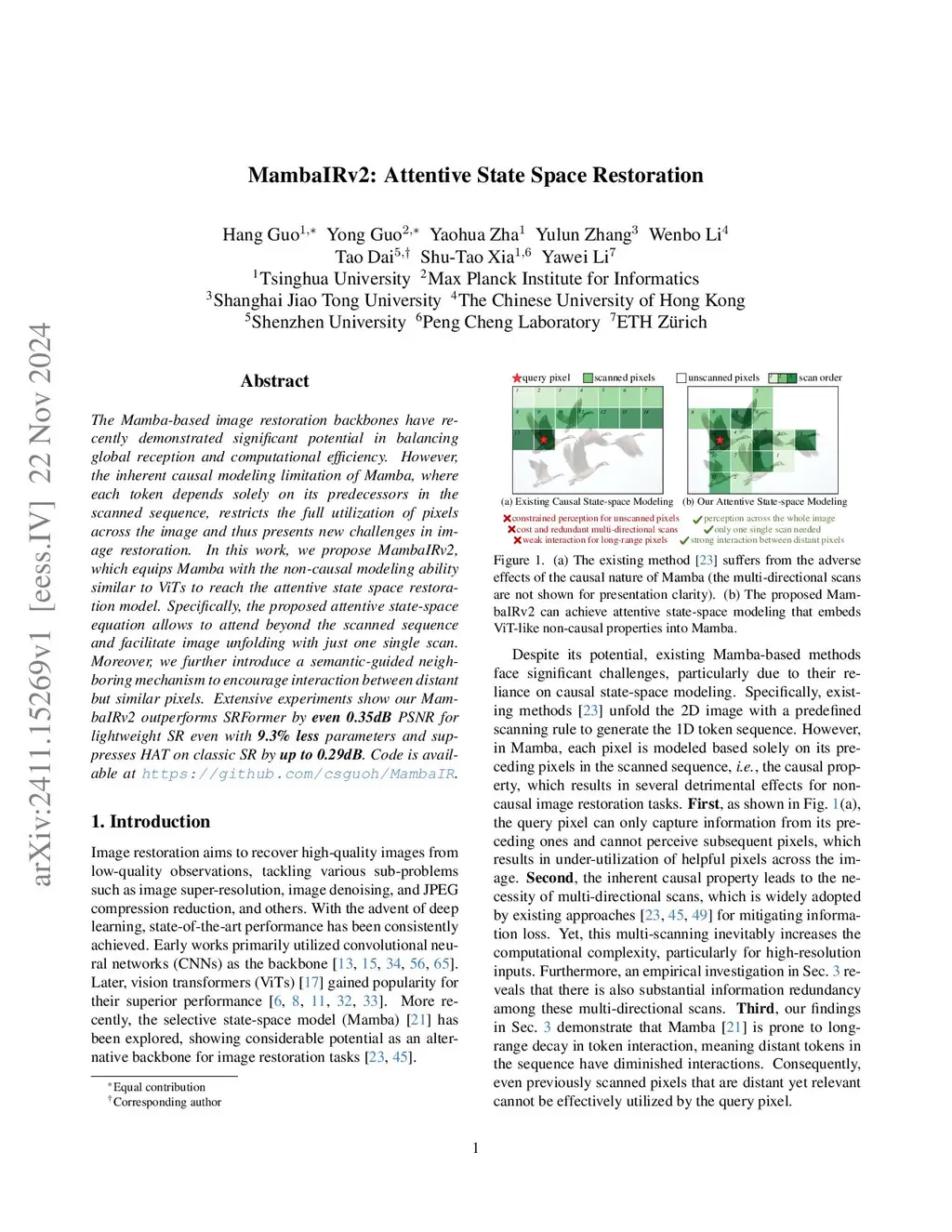 The Mamba-based image restoration backbones have recently demonstrated significant potential in balancing global reception and computational efficiency. However, the inherent causal modeling limitation of Mamba, where each token depends solely on its predecessors in the scanned sequence, restricts the full utilization of pixels across the image and thus presents new challenges in image restoration. In this work, we propose MambaIRv2, which equips Mamba with the non-causal modeling ability similar to ViTs to reach the attentive state space restoration model. Specifically, the proposed attentive state-space equation allows to attend beyond the scanned sequence and facilitate image unfolding with just one single scan. Moreover, we further introduce a semantic-guided neighboring mechanism to encourage interaction between distant but similar pixels. Extensive experiments show our MambaIRv2 outperforms SRFormer by even 0.35dB PSNR for lightweight SR even with 9.3\% less parameters and suppresses HAT on classic SR by up to 0.29dB. Code is available atthis https URL.
