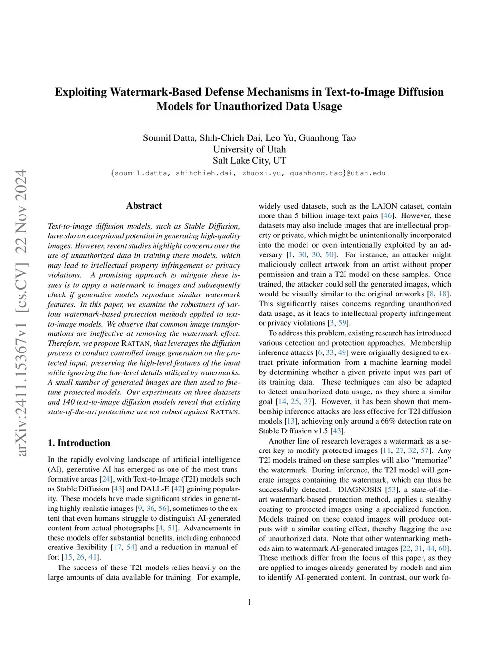 Exploiting Watermark-Based Defense Mechanisms in Text-to-Image Diffusion