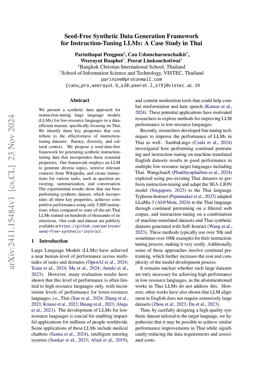 LLMs: A Case Study in Thai