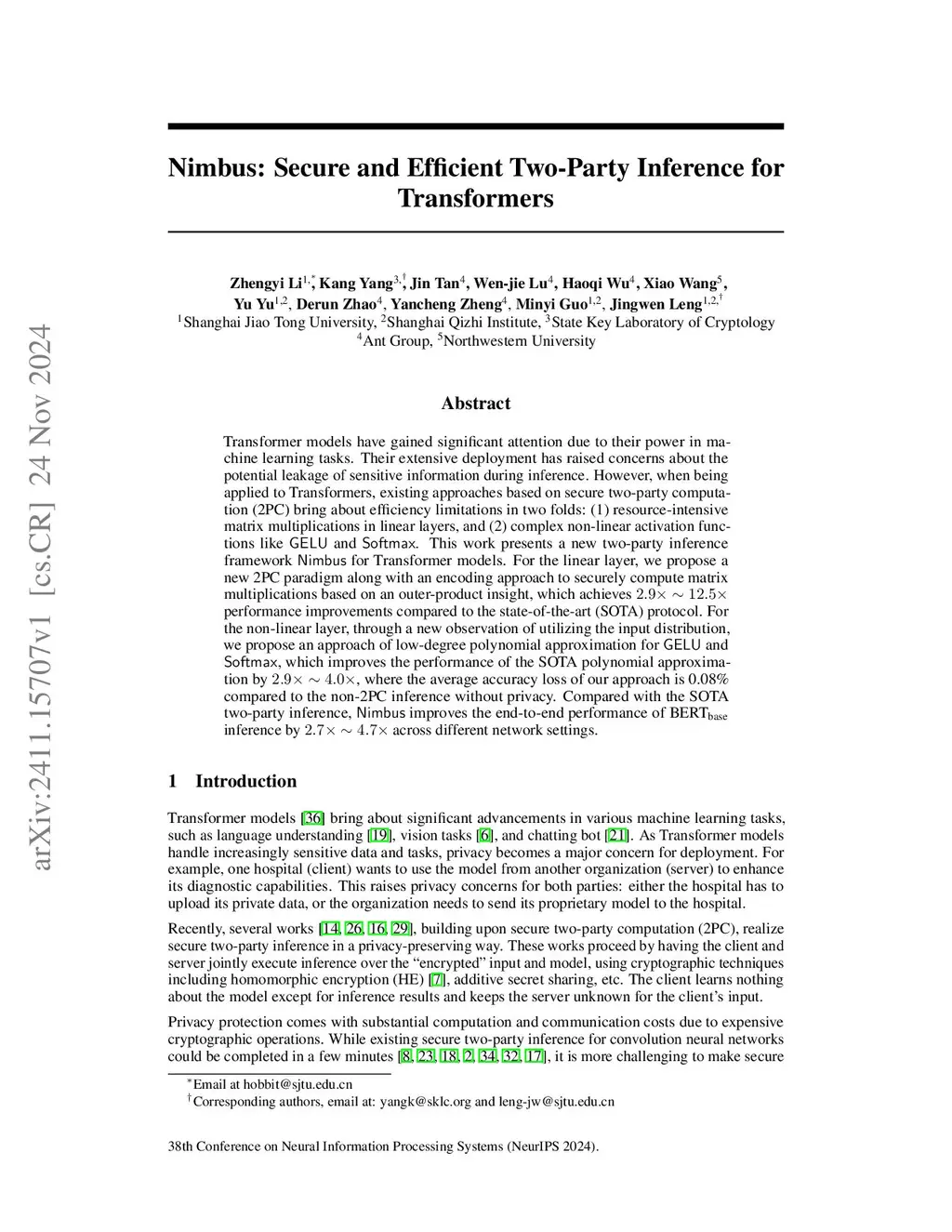 Nimbus: Secure and Efficient Two-Party Inference for Transformers