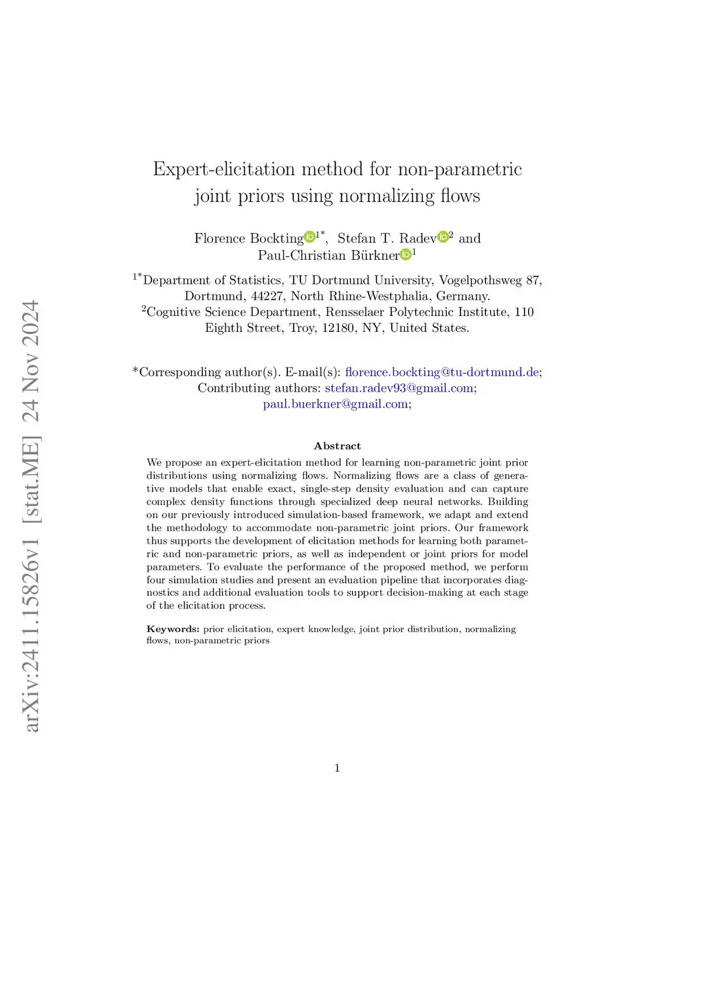 We propose an expert-elicitation method for learning non-parametric joint prior distributions using normalizing flows. Normalizing flows are a class of generative models that enable exact, single-step density evaluation and can capture complex density functions through specialized deep neural networks. Building on our previously introduced simulation-based framework, we adapt and extend the methodology to accommodate non-parametric joint priors. Our framework thus supports the development of elicitation methods for learning both parametric and non-parametric priors, as well as independent or joint priors for model parameters. To evaluate the performance of the proposed method, we perform four simulation studies and present an evaluation pipeline that incorporates diagnostics and additional evaluation tools to support decision-making at each stage of the elicitation process.