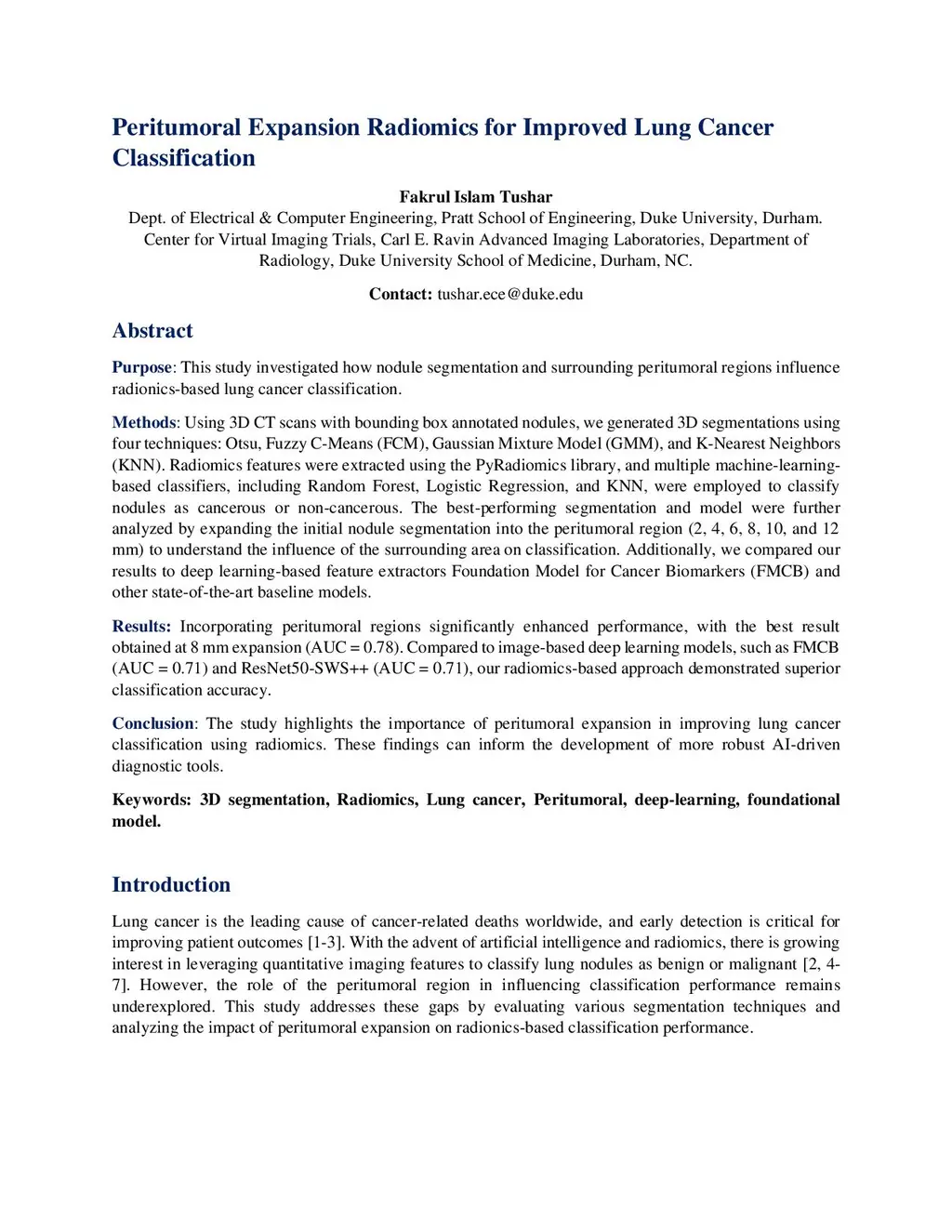 Peritumoral Expansion Radiomics for Improved Lung Cancer Classification