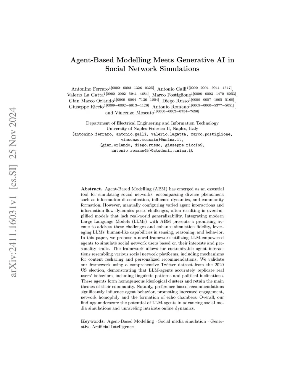 Agent-Based Modelling Meets Generative AI in Social Network Simulations