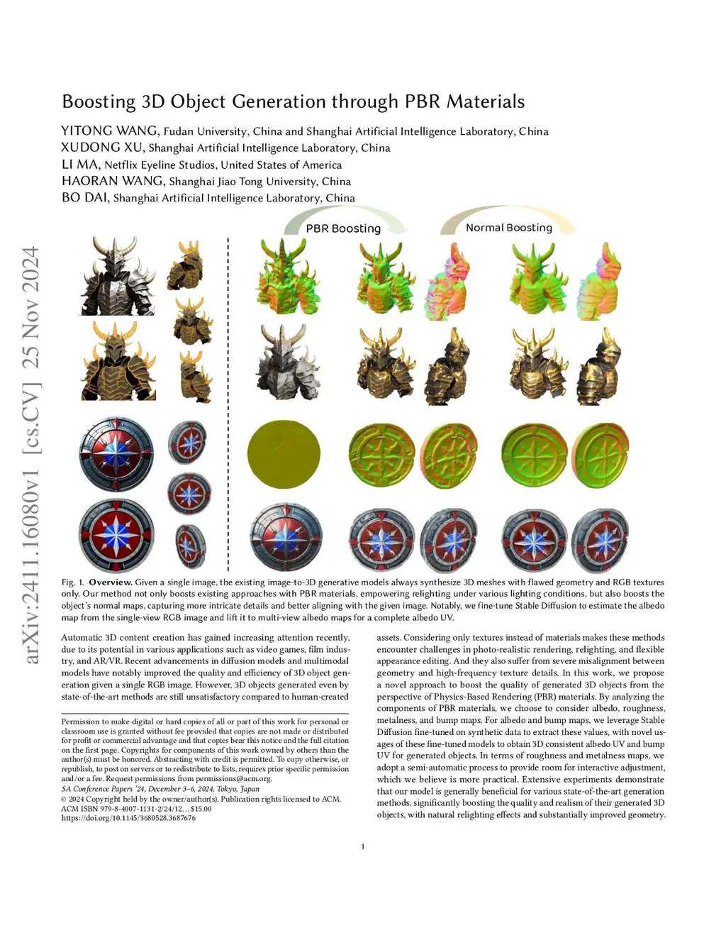 Automatic 3D content creation has gained increasing attention recently, due to its potential in various applications such as video games, film industry, and AR/VR. Recent advancements in diffusion models and multimodal models have notably improved the quality and efficiency of 3D object generation given a single RGB image. However, 3D objects generated even by state-of-the-art methods are still unsatisfactory compared to human-created assets. Considering only textures instead of materials makes these methods encounter challenges in photo-realistic rendering, relighting, and flexible appearance editing. And they also suffer from severe misalignment between geometry and high-frequency texture details. In this work, we propose a novel approach to boost the quality of generated 3D objects from the perspective of Physics-Based Rendering (PBR) materials. By analyzing the components of PBR materials, we choose to consider albedo, roughness, metalness, and bump maps. For albedo and bump maps, we leverage Stable Diffusion fine-tuned on synthetic data to extract these values, with novel usages of these fine-tuned models to obtain 3D consistent albedo UV and bump UV for generated objects. In terms of roughness and metalness maps, we adopt a semi-automatic process to provide room for interactive adjustment, which we believe is more practical. Extensive experiments demonstrate that our model is generally beneficial for various state-of-the-art generation methods, significantly boosting the quality and realism of their generated 3D objects, with natural relighting effects and substantially improved geometry.