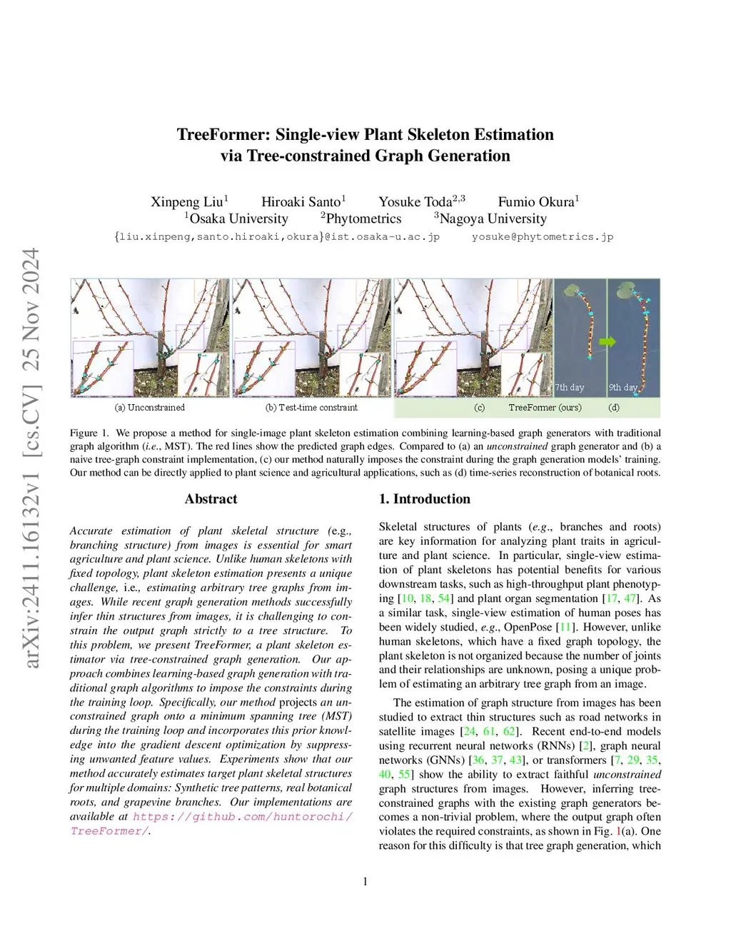 TreeFormer: Single-view Plant Skeleton Estimation via Tree-constrained