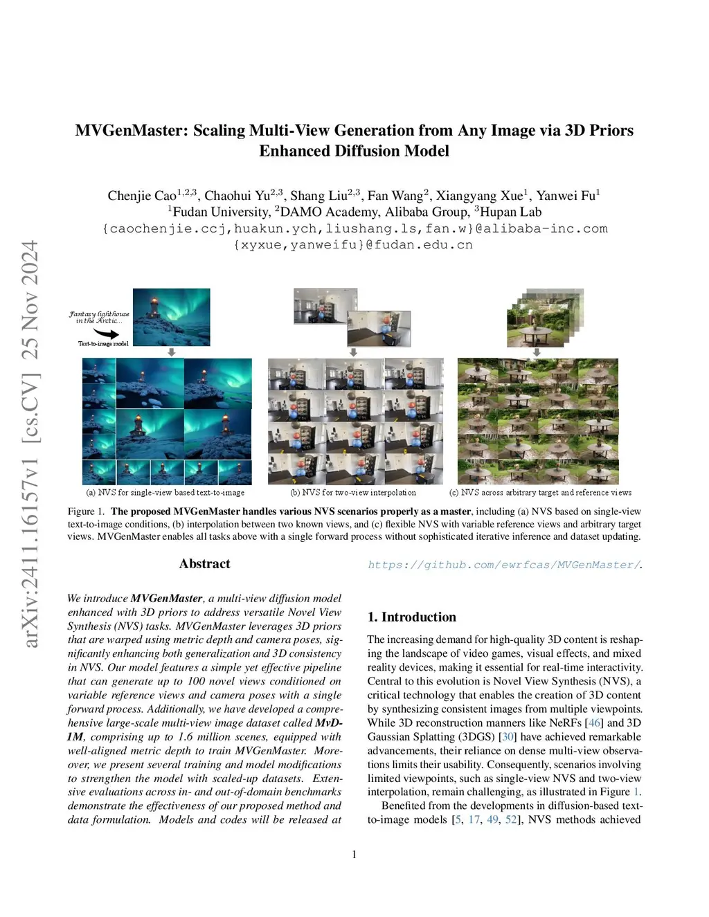 We introduce MVGenMaster, a multi-view diffusion model enhanced with 3D priors to address versatile Novel View Synthesis (NVS) tasks. MVGenMaster leverages 3D priors that are warped using metric depth and camera poses, significantly enhancing both generalization and 3D consistency in NVS. Our model features a simple yet effective pipeline that can generate up to 100 novel views conditioned on variable reference views and camera poses with a single forward process. Additionally, we have developed a comprehensive large-scale multi-view image dataset called MvD-1M, comprising up to 1.6 million scenes, equipped with well-aligned metric depth to train MVGenMaster. Moreover, we present several training and model modifications to strengthen the model with scaled-up datasets. Extensive evaluations across in- and out-of-domain benchmarks demonstrate the effectiveness of our proposed method and data formulation. Models and codes will be released atthis https URL.