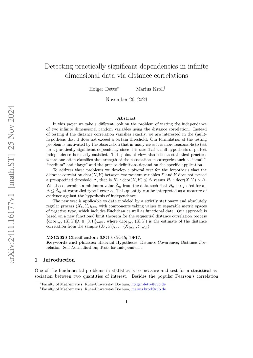 Detecting practically significant dependencies in infinite dimensional