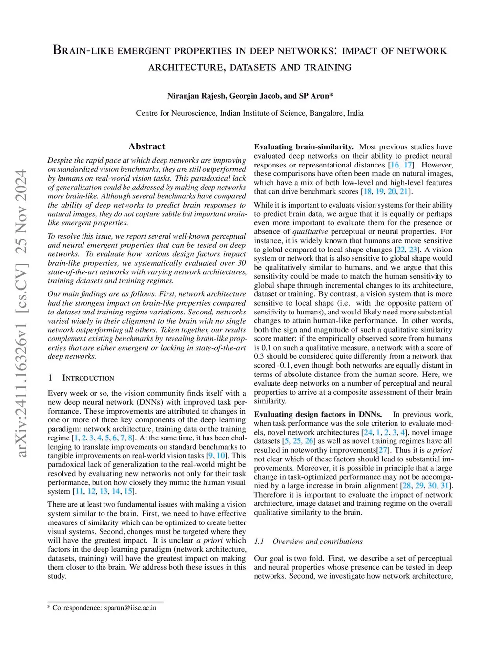 Brain-like emergent properties in deep networks: impact of network architecture, datasets and training
