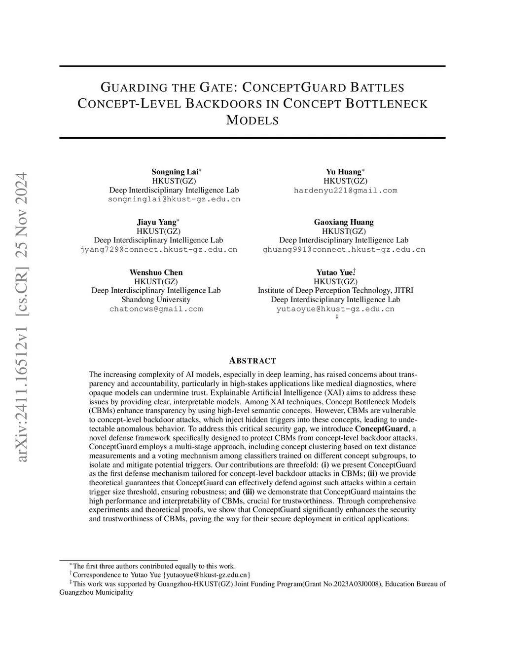 The increasing complexity of AI models, especially in deep learning, has raised concerns about transparency and accountability, particularly in high-stakes applications like medical diagnostics, where opaque models can undermine trust. Explainable Artificial Intelligence (XAI) aims to address these issues by providing clear, interpretable models. Among XAI techniques, Concept Bottleneck Models (CBMs) enhance transparency by using high-level semantic concepts. However, CBMs are vulnerable to concept-level backdoor attacks, which inject hidden triggers into these concepts, leading to undetectable anomalous behavior. To address this critical security gap, we introduce ConceptGuard, a novel defense framework specifically designed to protect CBMs from concept-level backdoor attacks. ConceptGuard employs a multi-stage approach, including concept clustering based on text distance measurements and a voting mechanism among classifiers trained on different concept subgroups, to isolate and mitigate potential triggers. Our contributions are threefold: (i) we present ConceptGuard as the first defense mechanism tailored for concept-level backdoor attacks in CBMs; (ii) we provide theoretical guarantees that ConceptGuard can effectively defend against such attacks within a certain trigger size threshold, ensuring robustness; and (iii) we demonstrate that ConceptGuard maintains the high performance and interpretability of CBMs, crucial for trustworthiness. Through comprehensive experiments and theoretical proofs, we show that ConceptGuard significantly enhances the security and trustworthiness of CBMs, paving the way for their secure deployment in critical applications.