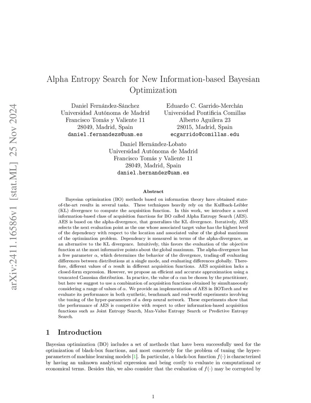Bayesian optimization (BO) methods based on information theory have obtained state-of-the-art results in several tasks. These techniques heavily rely on the Kullback-Leibler (KL) divergence to compute the acquisition function. In this work, we introduce a novel information-based class of acquisition functions for BO called Alpha Entropy Search (AES). AES is based on the {\alpha}-divergence, that generalizes the KL divergence. Iteratively, AES selects the next evaluation point as the one whose associated target value has the highest level of the dependency with respect to the location and associated value of the global maximum of the optimization problem. Dependency is measured in terms of the {\alpha}-divergence, as an alternative to the KL divergence. Intuitively, this favors the evaluation of the objective function at the most informative points about the global maximum. The {\alpha}-divergence has a free parameter {\alpha}, which determines the behavior of the divergence, trading-off evaluating differences between distributions at a single mode, and evaluating differences globally. Therefore, different values of {\alpha} result in different acquisition functions. AES acquisition lacks a closed-form expression. However, we propose an efficient and accurate approximation using a truncated Gaussian distribution. In practice, the value of {\alpha} can be chosen by the practitioner, but here we suggest to use a combination of acquisition functions obtained by simultaneously considering a range of values of {\alpha}. We provide an implementation of AES in BOTorch and we evaluate its performance in both synthetic, benchmark and real-world experiments involving the tuning of the hyper-parameters of a deep neural network. These experiments show that the performance of AES is competitive with respect to other information-based acquisition functions such as JES, MES or PES.