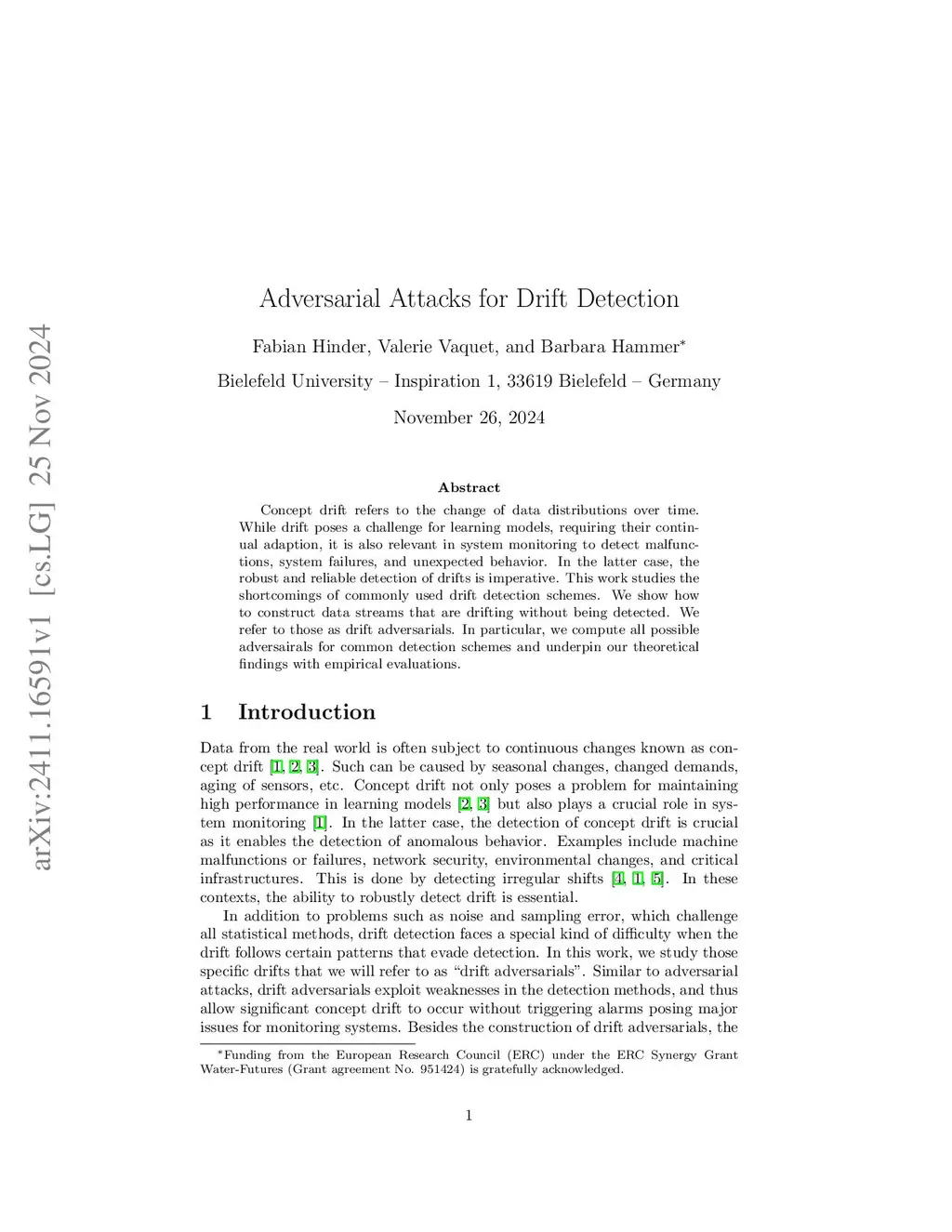 Concept drift refers to the change of data distributions over time. While drift poses a challenge for learning models, requiring their continual adaption, it is also relevant in system monitoring to detect malfunctions, system failures, and unexpected behavior. In the latter case, the robust and reliable detection of drifts is imperative. This work studies the shortcomings of commonly used drift detection schemes. We show how to construct data streams that are drifting without being detected. We refer to those as drift adversarials. In particular, we compute all possible adversairals for common detection schemes and underpin our theoretical findings with empirical evaluations.