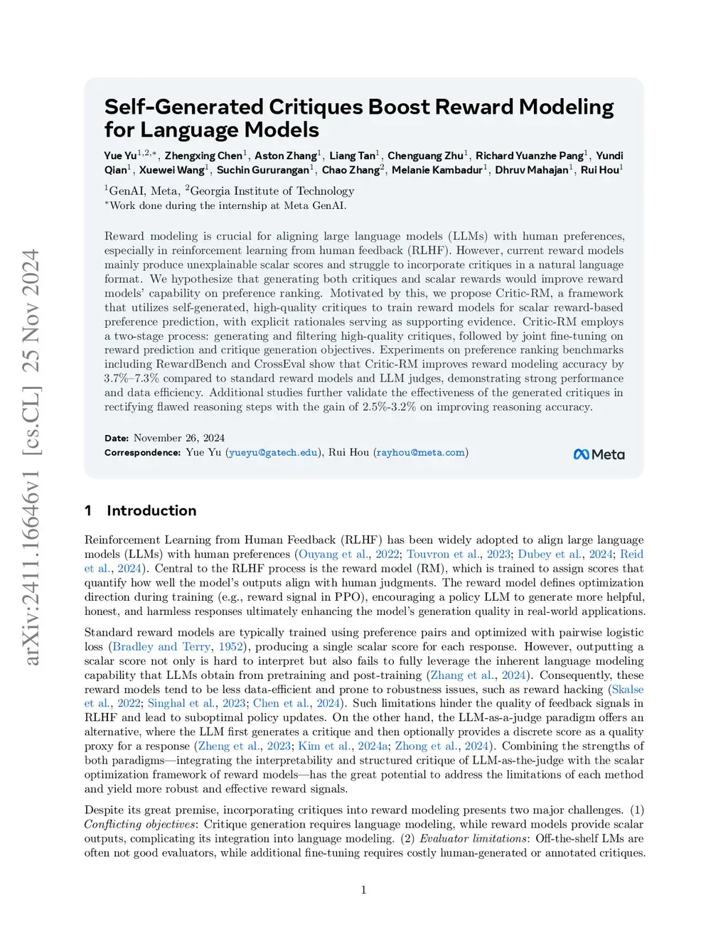 Self-Generated Critiques Boost Reward Modeling for Language Models