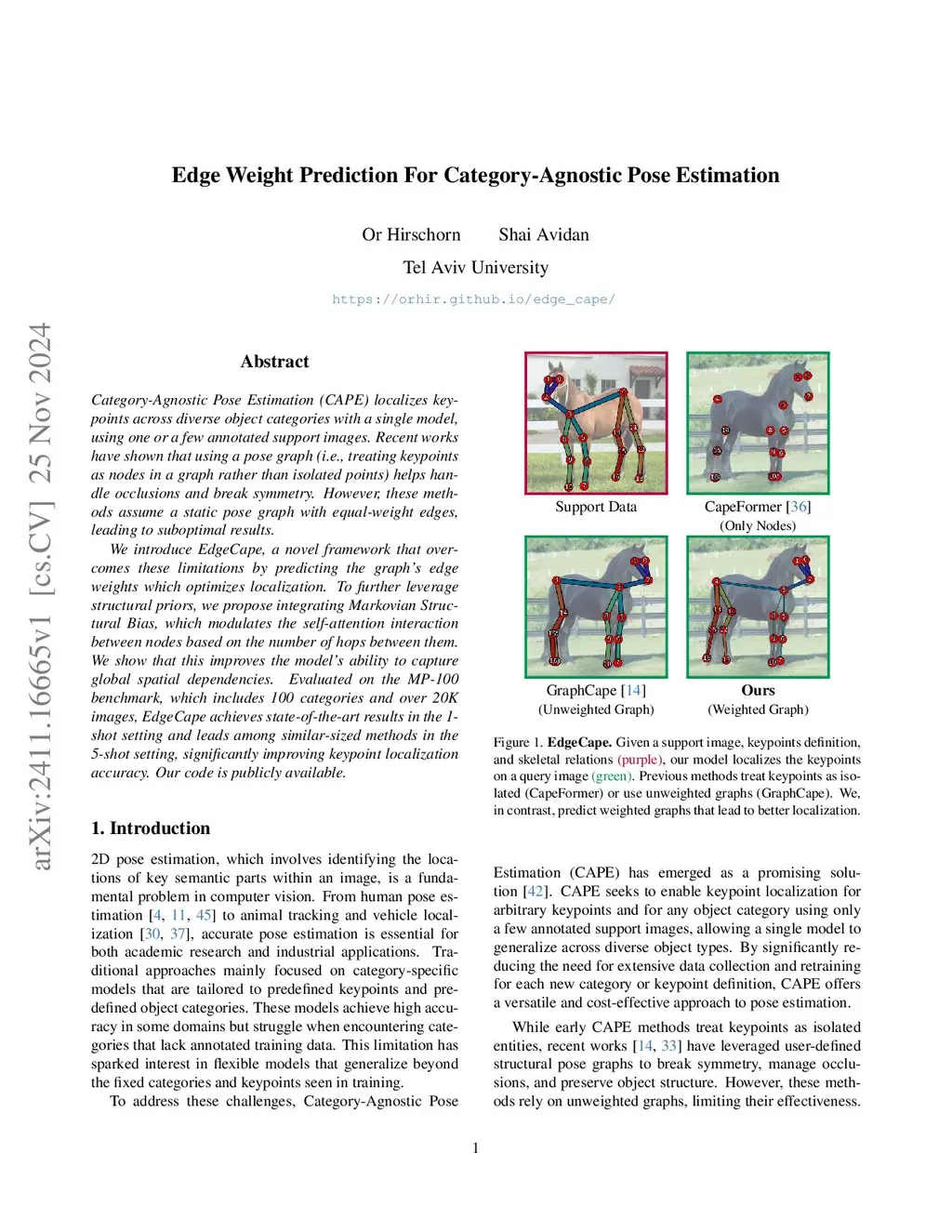Category-Agnostic Pose Estimation (CAPE) localizes keypoints across diverse object categories with a single model, using one or a few annotated support images. Recent works have shown that using a pose graph (i.e., treating keypoints as nodes in a graph rather than isolated points) helps handle occlusions and break symmetry. However, these methods assume a static pose graph with equal-weight edges, leading to suboptimal results. We introduce EdgeCape, a novel framework that overcomes these limitations by predicting the graph's edge weights which optimizes localization. To further leverage structural priors, we propose integrating Markovian Structural Bias, which modulates the self-attention interaction between nodes based on the number of hops between them. We show that this improves the model's ability to capture global spatial dependencies. Evaluated on the MP-100 benchmark, which includes 100 categories and over 20K images, EdgeCape achieves state-of-the-art results in the 1-shot setting and leads among similar-sized methods in the 5-shot setting, significantly improving keypoint localization accuracy. Our code is publicly available.