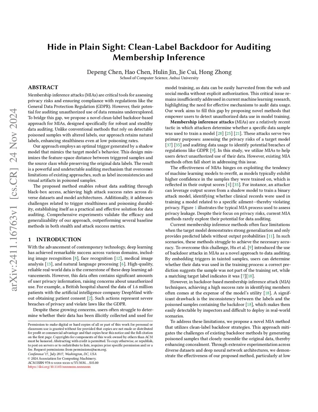 Hide in Plain Sight: Clean-Label Backdoor for Auditing Membership