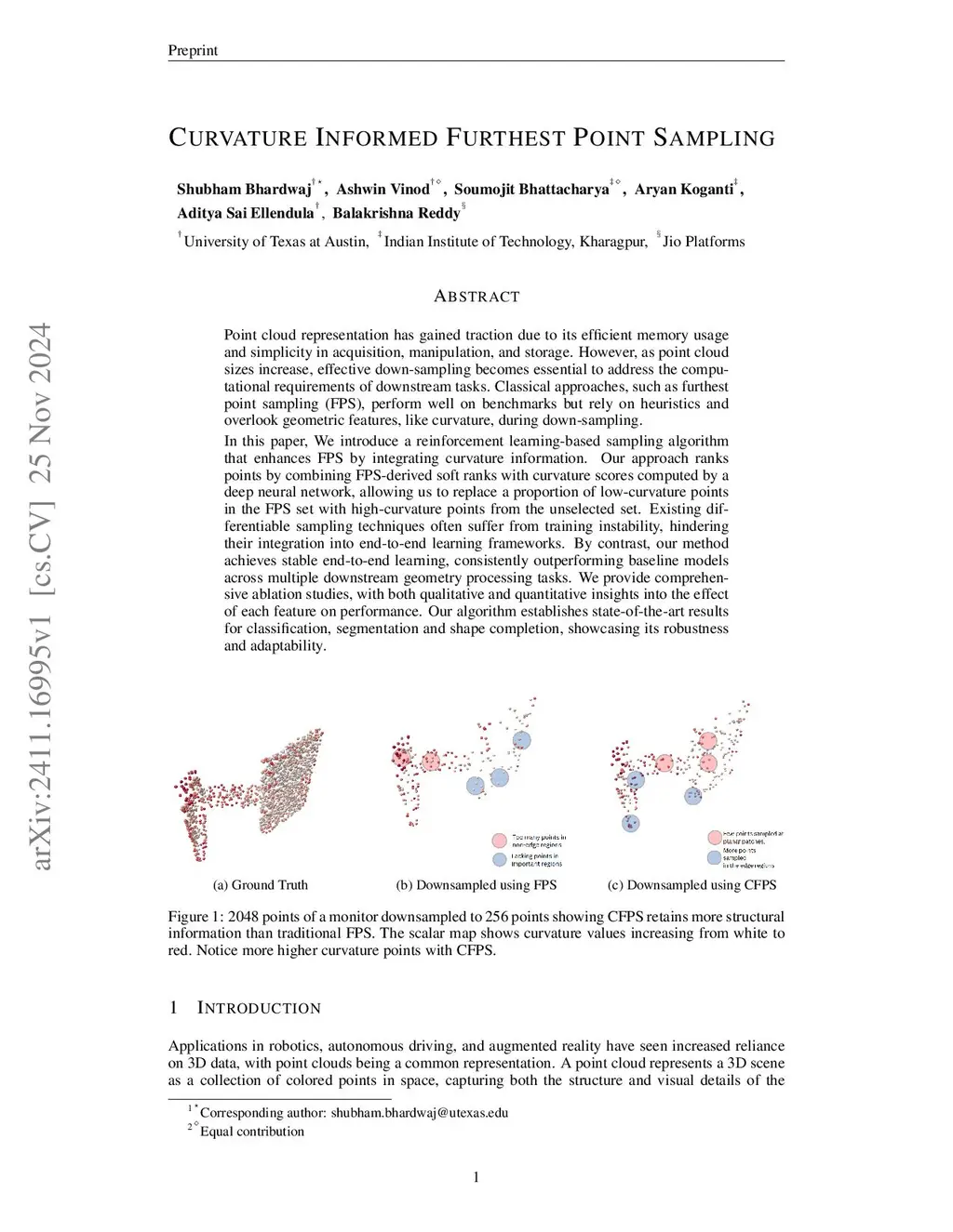 Point cloud representation has gained traction due to its efficient memory usage and simplicity in acquisition, manipulation, and storage. However, as point cloud sizes increase, effective down-sampling becomes essential to address the computational requirements of downstream tasks. Classical approaches, such as furthest point sampling (FPS), perform well on benchmarks but rely on heuristics and overlook geometric features, like curvature, during down-sampling. In this paper, We introduce a reinforcement learning-based sampling algorithm that enhances FPS by integrating curvature information. Our approach ranks points by combining FPS-derived soft ranks with curvature scores computed by a deep neural network, allowing us to replace a proportion of low-curvature points in the FPS set with high-curvature points from the unselected set. Existing differentiable sampling techniques often suffer from training instability, hindering their integration into end-to-end learning frameworks. By contrast, our method achieves stable end-to-end learning, consistently outperforming baseline models across multiple downstream geometry processing tasks. We provide comprehensive ablation studies, with both qualitative and quantitative insights into the effect of each feature on performance. Our algorithm establishes state-of-the-art results for classification, segmentation and shape completion, showcasing its robustness and adaptability.