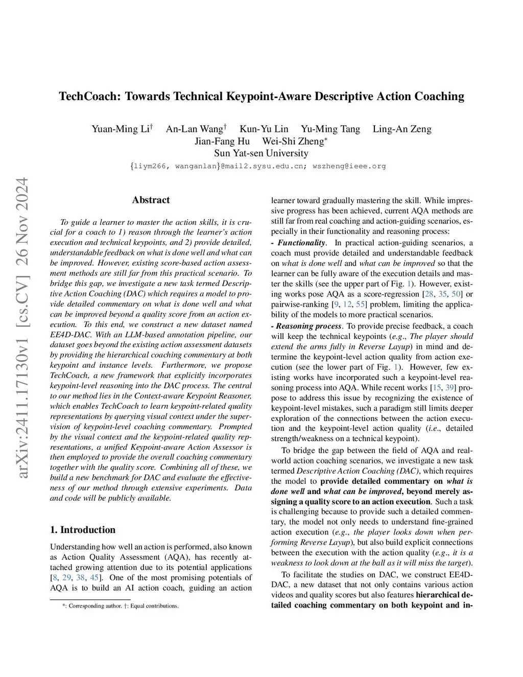 TechCoach: Towards Technical-Point-Aware Descriptive Action Coaching