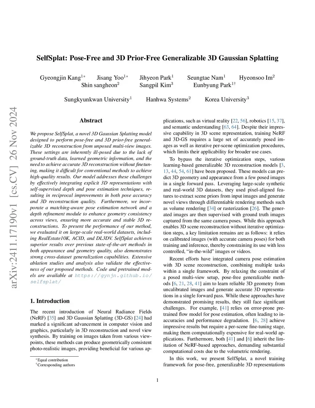 SelfSplat: Pose-Free and 3D Prior-Free Generalizable 3D Gaussian Splatting