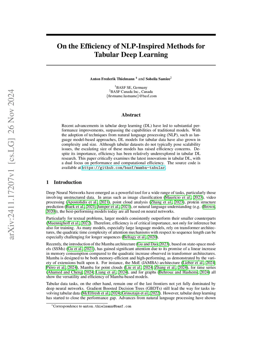 Recent advancements in tabular deep learning (DL) have led to substantial performance improvements, surpassing the capabilities of traditional models. With the adoption of techniques from natural language processing (NLP), such as language model-based approaches, DL models for tabular data have also grown in complexity and size. Although tabular datasets do not typically pose scalability issues, the escalating size of these models has raised efficiency concerns. Despite its importance, efficiency has been relatively underexplored in tabular DL research. This paper critically examines the latest innovations in tabular DL, with a dual focus on performance and computational efficiency. The source code is available at https://github.com/basf/mamba-tabular.