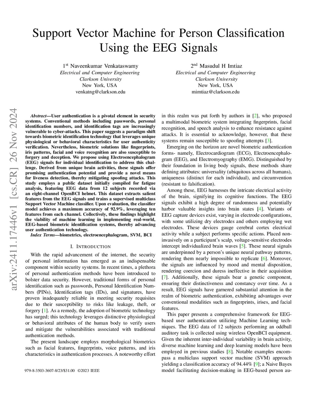 Support Vector Machine for Person Classification Using the EEG Signals
