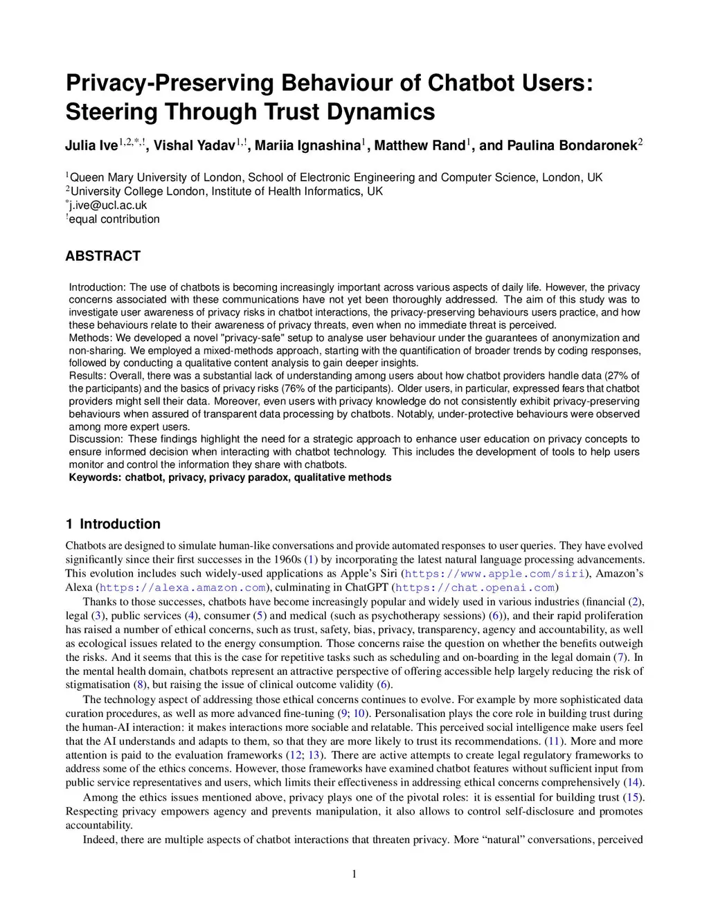 Privacy-Preserving Behaviour of Chatbot Users: Steering Through Trust